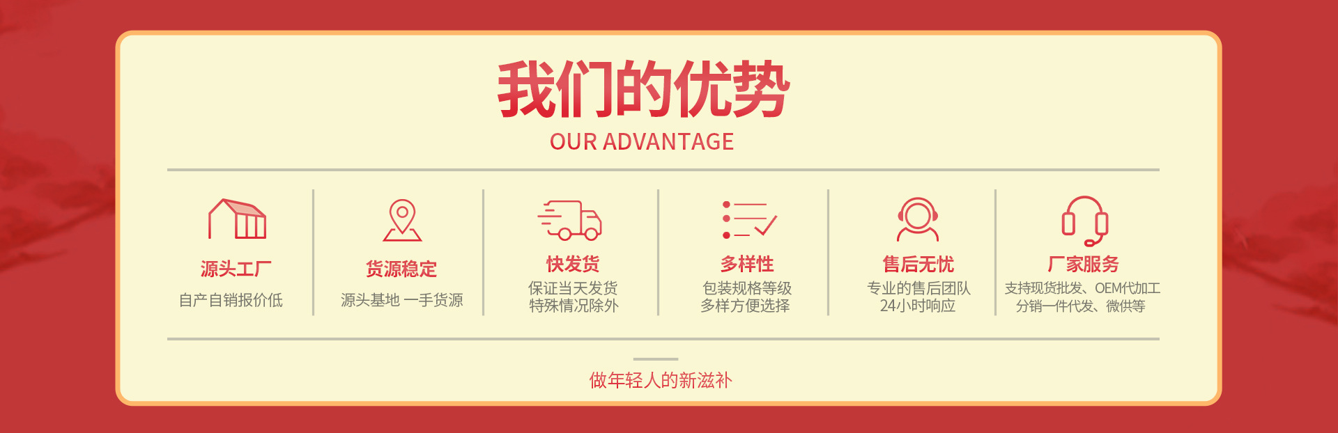 版權所有 代工幫 【www.cndrinks.cc】 CopyRight 2020-2025 豫網藥信備字[2025]00123號 電信與信息服務業務經營許可證:豫ICP備20017666號-3 鄭州代工幫網絡科技有限公司 公司地址:鄭州市金水區北環路與文化路瀚海北金B座7019室 聯系電話:0371-55621375 本站只起到信息平臺作用,不為交易經過負任何責任,請雙方謹慎交易,以確保您的權益 任何單位及個人不得發布欺騙性產品信息