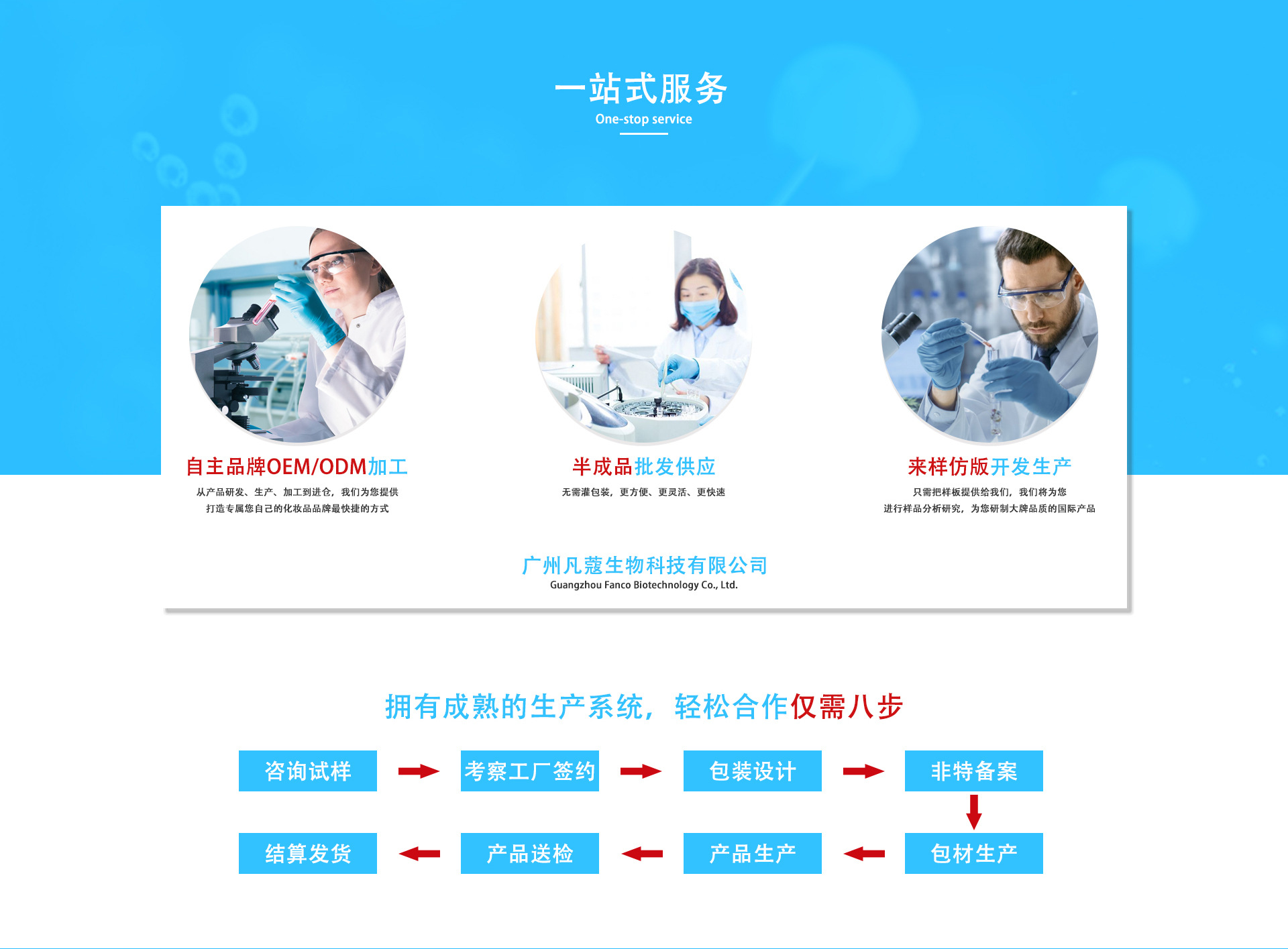 廣州凡蔻生物科技有限公司是面部精華等產(chǎn)品專業(yè)生產(chǎn)加工的公司,擁有完整、科學的質(zhì)量管理體系。廣州凡蔻生物科技有限公司的誠信、實力和產(chǎn)品質(zhì)量獲得業(yè)界的認可。歡迎各界朋友蒞臨參觀、指導和業(yè)務(wù)洽談。