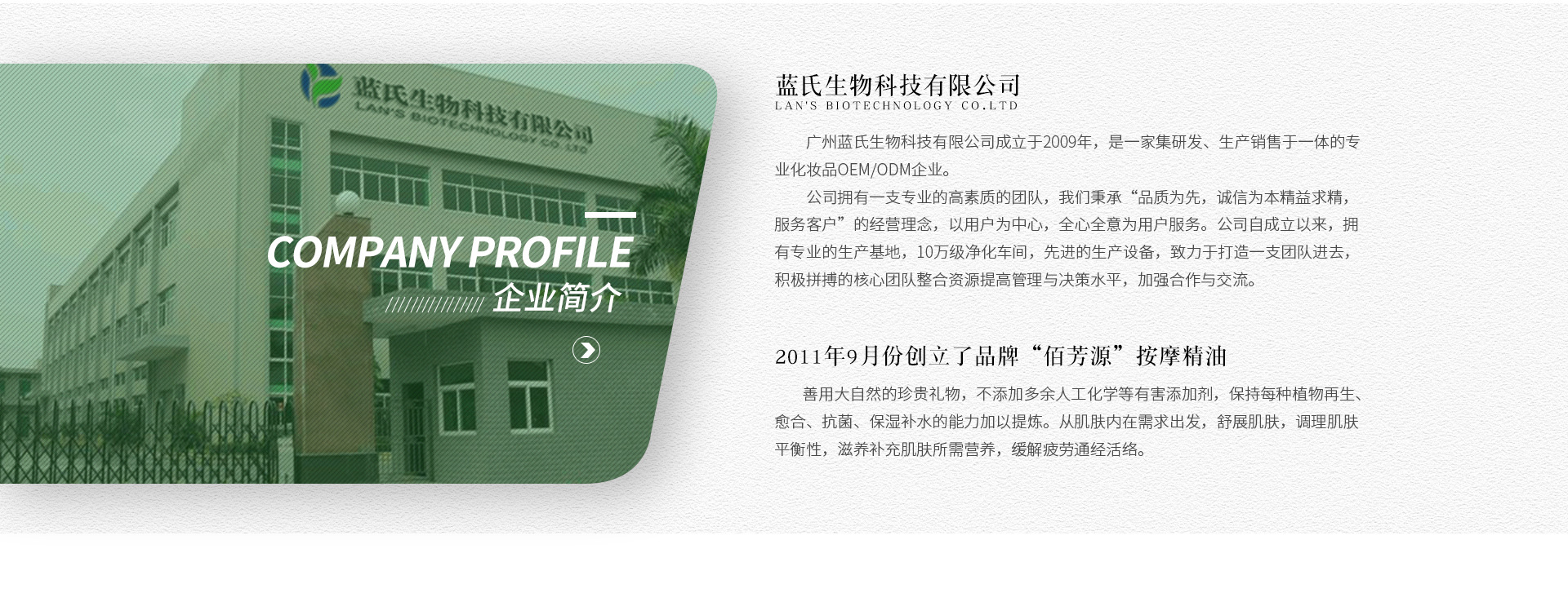 廣州藍氏生物科技有限公司 是一家生產銷售一體企業 公司專注按摩精油12 余年