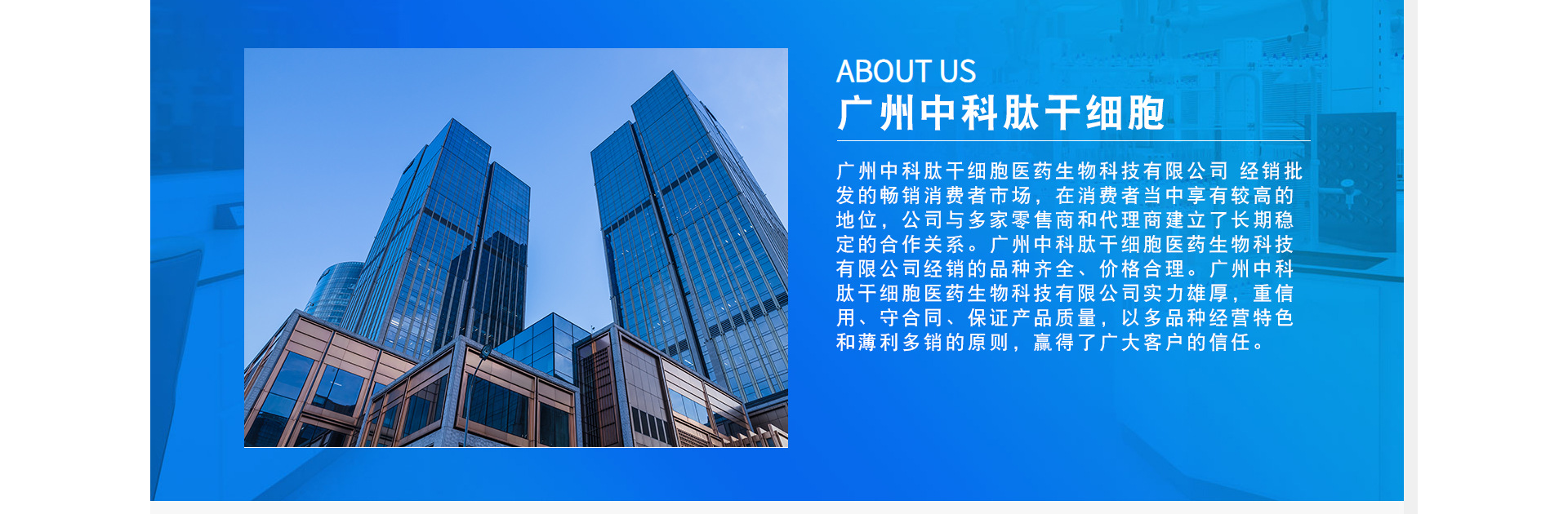 廣州中科肽干細胞醫藥生物科技有限公司 經銷批發的暢銷消費者市場,在消費者當中享有較高的地位,公司與多家零售商和代理商建立了長期穩定的合作關系。廣州中科肽干細胞醫藥生物科技有限公司經銷的品種齊全、價格合理。廣州中科肽干細胞醫藥生物科技有限公司實力雄厚,重信用、守合同、保證產品質量,以多品種經營特色和薄利多銷的原則,贏得了廣大客戶的信任。