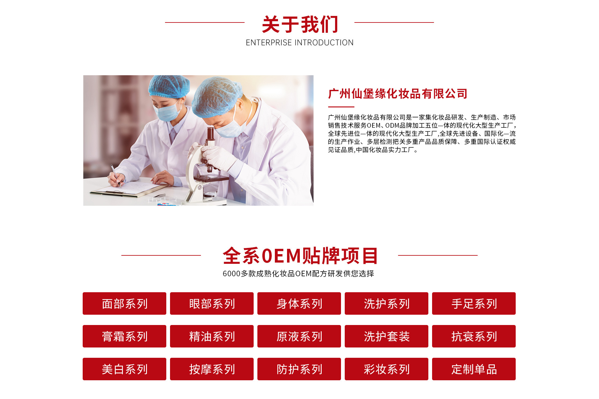 廣州仙堡緣化妝品有限公司是等產品專業生產加工的公司,擁有完整、科學的質量管理體系。廣州仙堡緣化妝品有限公司的誠信、實力和產品質量獲得業界的認可。歡迎各界朋友蒞臨參觀、指導和業務洽談。