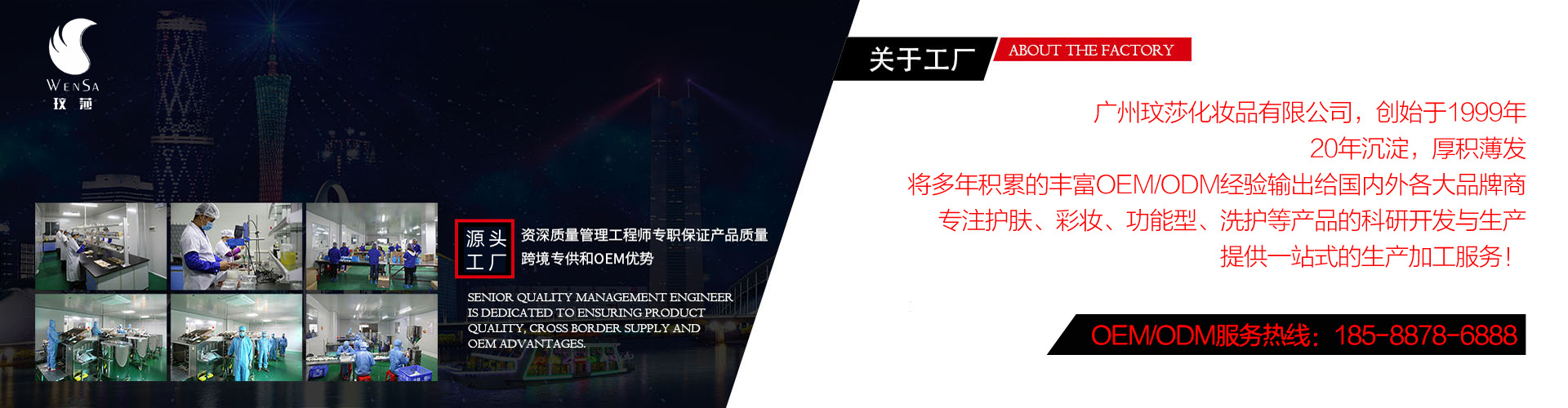 廣州玟莎化妝品有限公司是集研發、生產、營銷為一體的現代化OEM/ODM代工企業,順應時代潮流,為專業線、日化線、電商、直播電商、微商、外貿、直銷等渠道品牌客戶提供一站式加工服務。