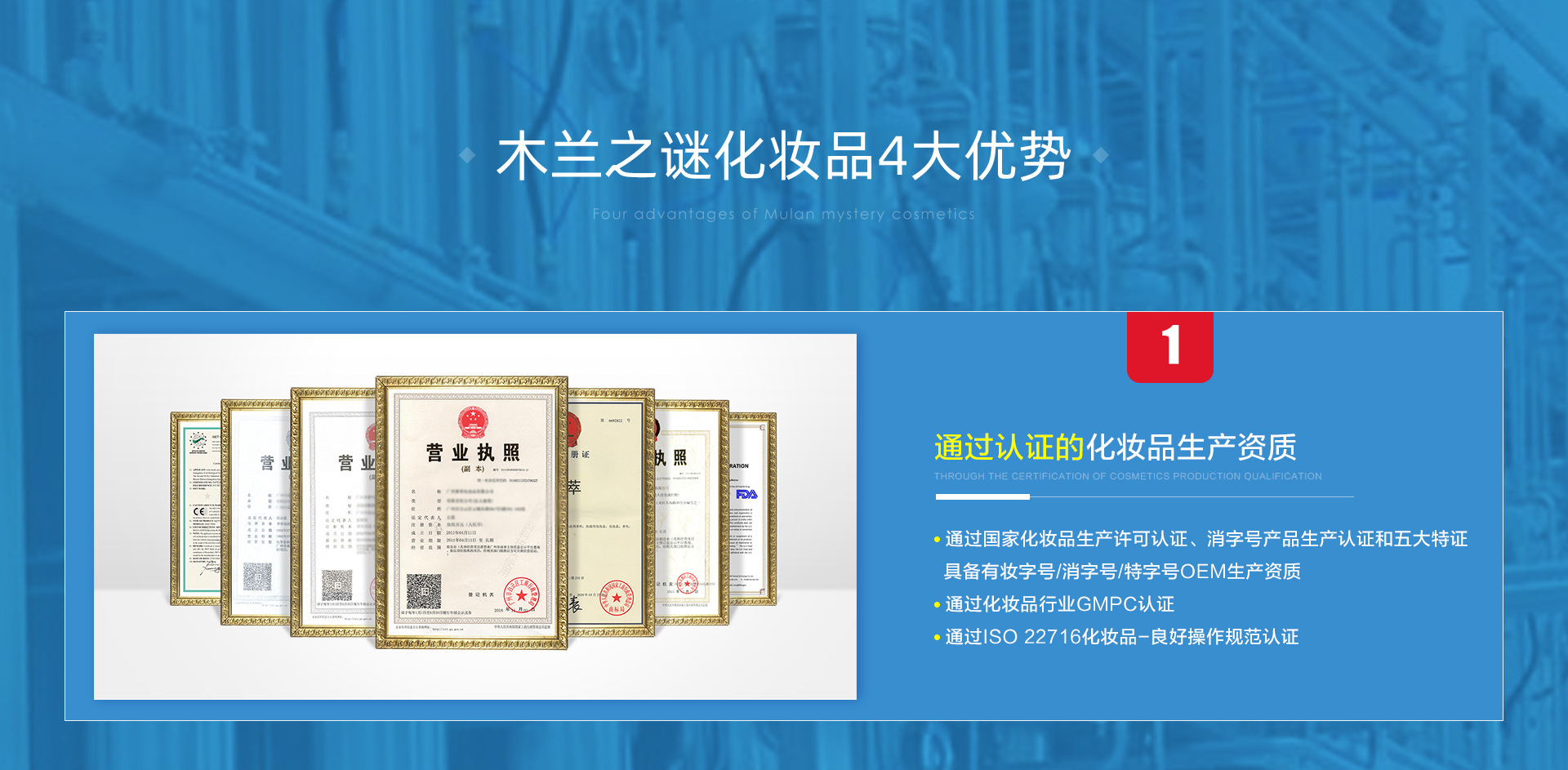 木蘭之謎(廣州)生物科技有限公司是一家集化妝品原料、配方研發、加工生產于一體的化妝品OEM加工,化妝品ODM加工公司,加工環境、設備儀器、檢測手段、人員素質都符合高品質化妝品的要求,我們待客真誠,和客戶互相支持共同前進,高起點的產品為客戶成功切入市場、開拓市場,鞏固市場、提供了有力保障。