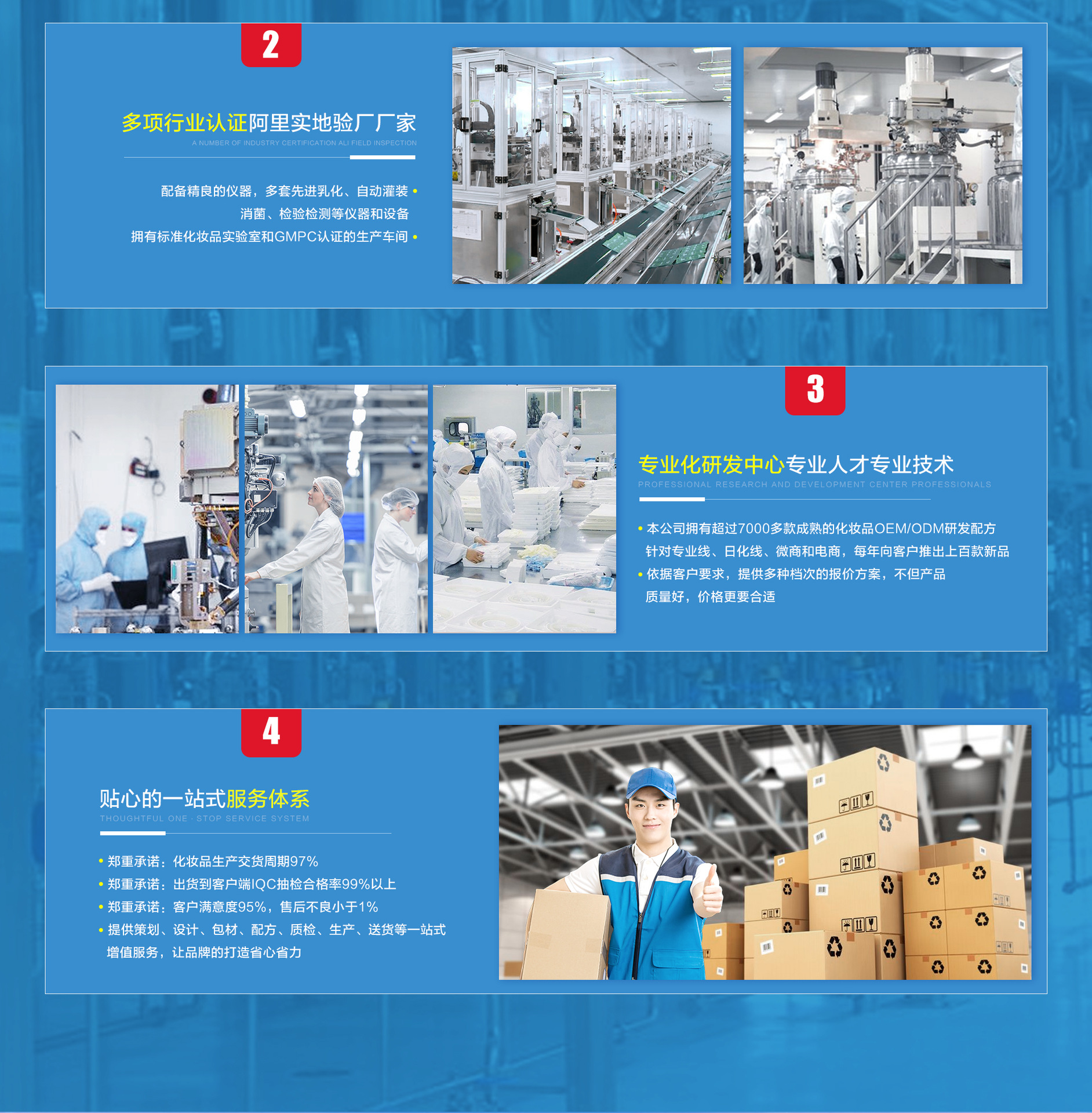 公司廠區環境優美,位于中國的南大門羊城廣州,廣州 廣州市白云區均禾街羅崗村獅子嶺二橫路50號,生產車間環境完全按所需要的條件建設,公司目前擁有多條現代化的生產線(全自動面膜生產線),多臺國際、國內先進乳化、自動灌裝、檢驗檢測等儀器,具備各類膏霜、洗護、美容化妝產品的生產條件和能力。我們嚴格執行質量體系的同時要求組織日常全過程生產,使每一支驗收合格的產品,在市場上讓不同地區,不同類型的消費者滿意。