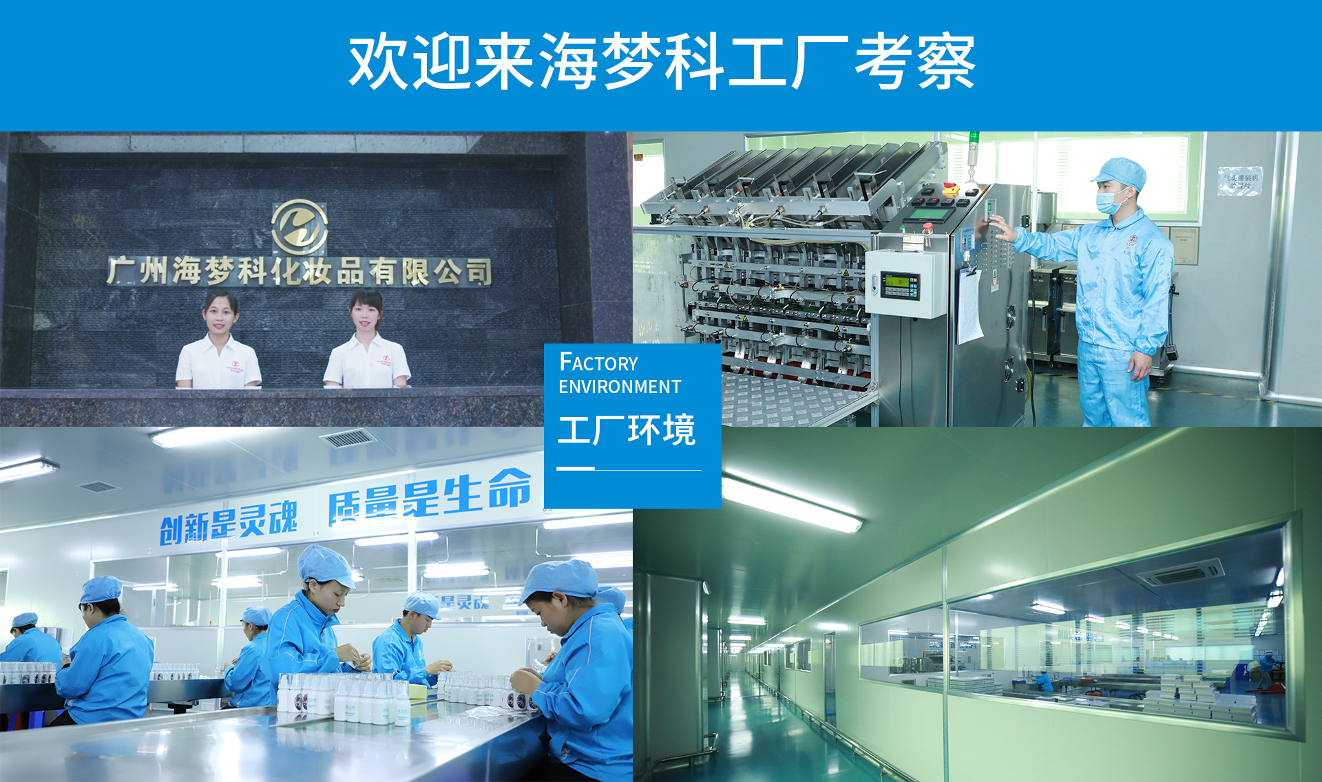 廣州海夢科化妝品有限公司是一家集美容化妝品研發、生產、銷售的大型尖端科技化妝品生產公司,廠房面積12000㎡,坐落于廣州工業之都花都區邦盛三路9號科維工業園。公司秉承“以用戶為核心、以誠立業、以質取勝,創新服務”的經營理念,以產品品質為企業發展之靈魂、以優質服務為企業強健之命脈!以市場為導向,以信譽為根本。所生產產品質地精良、造型美觀、配方成熟、達到國家食品藥品級標準,深受廣大消費者喜愛。廠房規模大,設備高端先進、技術精良!各類作業車間嚴格按照化妝品無塵車間的規范要求,嚴格按照國家相關衛生條例建設,空氣質量達到國家食品級加工的標準,是一家健全、成熟、穩定的大型綜合化妝品生產企業