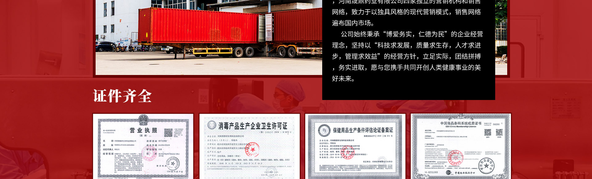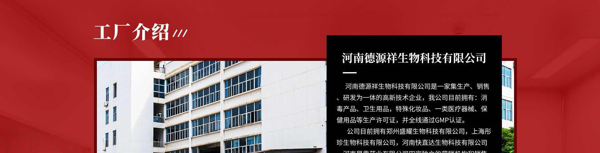 河南德源祥生物科技有限公司是一家集生產、銷售、研發為一體的高新技術企業,我公司目前擁有:消毒產品、衛生用品,特殊化妝品、一類醫療器械、保健用品等生產許可證。 公司始終堅持“開發生物技術,發展民族產業;倡導養生文化,造福人類健康”的企業宗旨,繼承和發揚中醫“未病先防,既病防變”的養生理念和“藥食同源”文化,不斷挖掘和利用中醫藥文化的精髓,綜合開發和利用生物技術,努力研發養生健康產品。 公司目前擁有河南晟鼎藥業有限公司、鄭州盛耀生物科技有限公司,上海彤珍生物科技有限公司、河南快直達生物科技有限公司四大獨立的營銷機構和銷售網絡,致力于以獨具風格的現代營銷模式,銷售網絡遍布國內市場。 公司始終秉承“博愛務實,仁德為民”的企業經營理念,堅持以“科技求發展,質量求生存,人才求進步,管理求效益”的經營方針,立足實際,團結拼搏,務實進取,愿與您攜手共同開創人類健康事業的美好未來