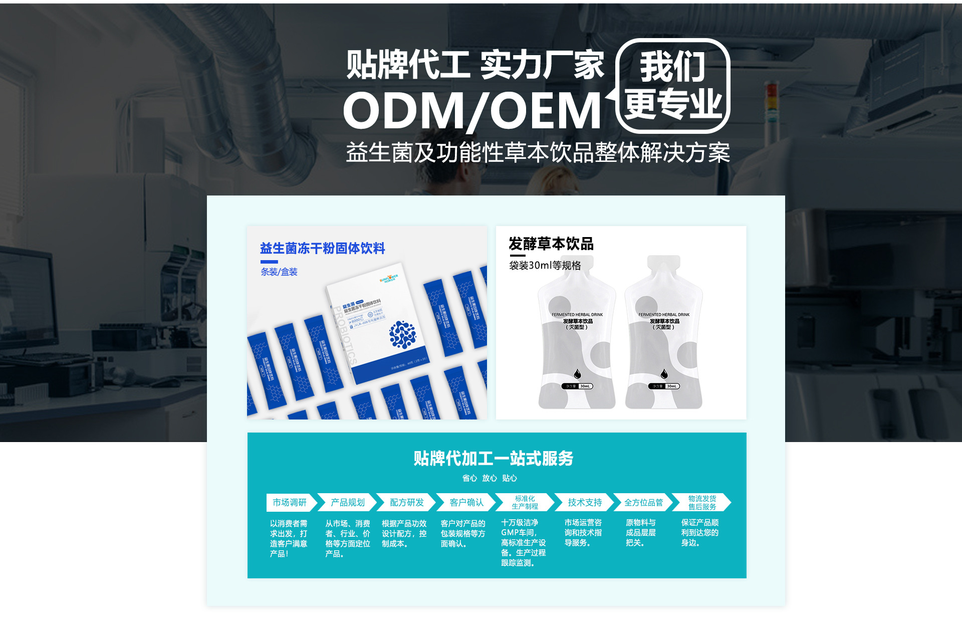 代工品類:γ-氨基丁酸 初乳堿性蛋白 低聚果糖漿 膠原肽 藍(lán)莓葉黃素酯 牛脾肽 引力素節(jié)節(jié)高飲品