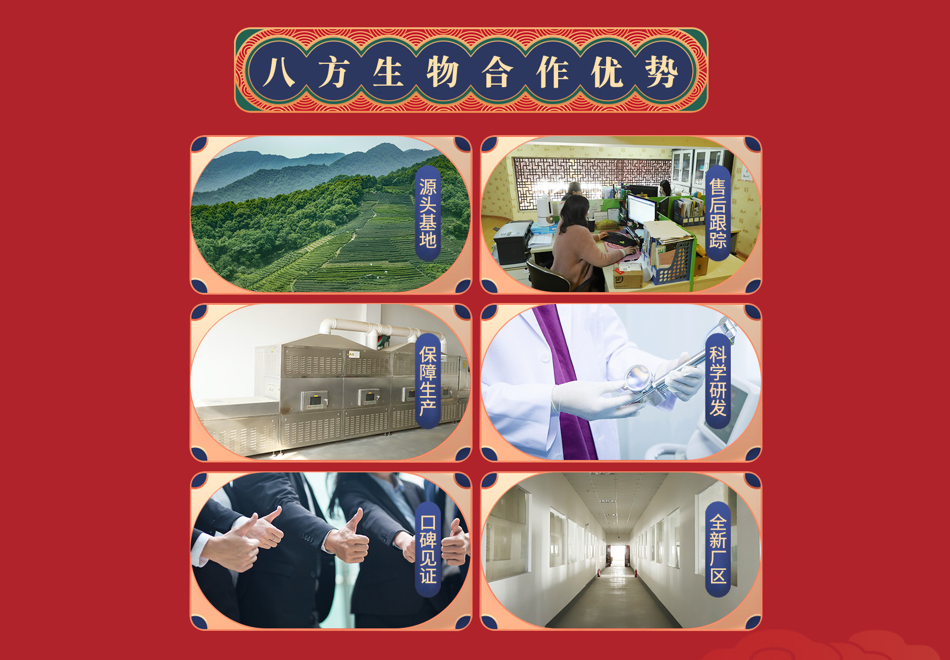 安徽八方生物科技有限公司成立于2016年5月,注冊(cè)資本2000萬(wàn)元。公司坐落于安徽省亳州市亳蕪現(xiàn)代產(chǎn)業(yè)園區(qū)。總建筑面積3700平方米。是一家集“資源、人才、技術(shù)、管理”于一體的專(zhuān)業(yè)從事代用茶、調(diào)味料的研發(fā)和生產(chǎn)銷(xiāo)售的現(xiàn)代化中小型企業(yè)。公司現(xiàn)有員工30多人,其中,具有大中專(zhuān)畢業(yè)學(xué)歷人員達(dá)40%以上。 我公司于2016年8月正式投產(chǎn),公司擁有全自動(dòng)包裝流水線等先進(jìn)的生產(chǎn)設(shè)備,能夠滿(mǎn)足市場(chǎng)大部分花茶等產(chǎn)品的包裝規(guī)格和客戶(hù)需求。產(chǎn)品有養(yǎng)生花茶、滋補(bǔ)湯料、固態(tài)調(diào)味料三大系列,共50多個(gè)品種,產(chǎn)品在同行業(yè)及國(guó)內(nèi)市場(chǎng)都享有較高聲譽(yù)。同時(shí),公司還承接各種花茶及袋泡茶的生產(chǎn)和代加工。我公司秉承“質(zhì)量為本,勇于創(chuàng)新”的發(fā)展理念,依托地域優(yōu)勢(shì),堅(jiān)持優(yōu)質(zhì)原料購(gòu)進(jìn),手工精挑細(xì)選,科學(xué)配比加工。