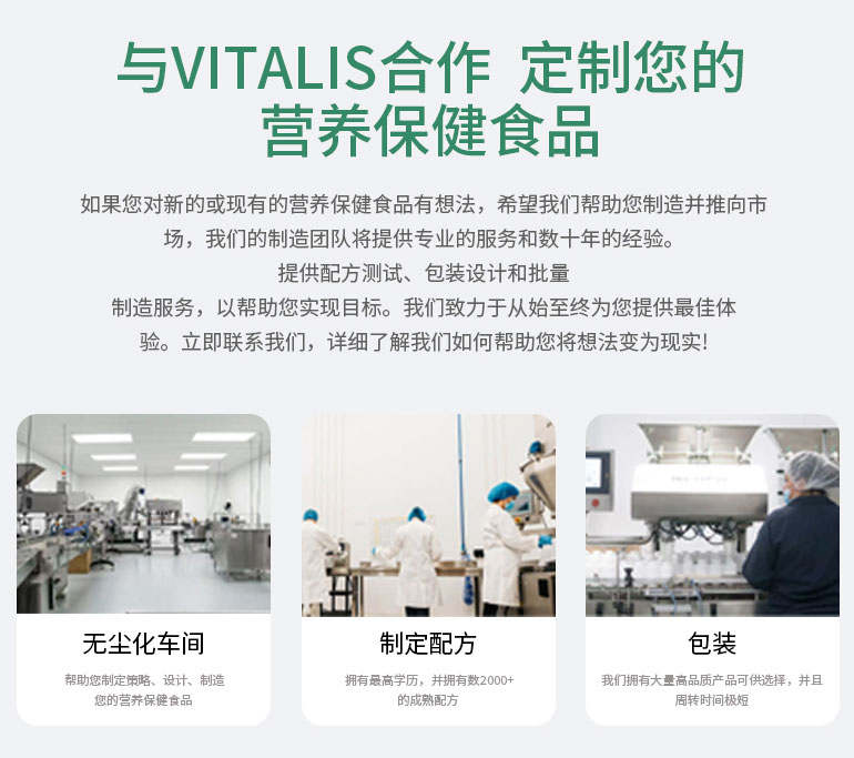 公司擁有豐富的全球原料資源,并堅持在全球100多個地區進行優質原料的采購。有4個生產區和有6個GMP生產車間,可生產近3000種進口營養保健食品,如軟膠囊、硬膠囊、片劑、粉末、顆粒劑、丸劑、口服液等。開發了全球前沿營養補充劑系列產品。