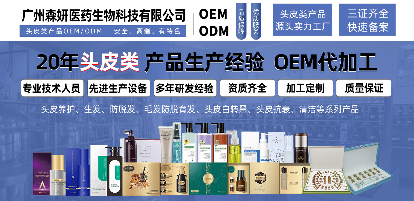 廣州森妍醫藥生物科技有限公司是一家集研發、生產、銷售于一體的高新技術企業,專注頭皮健康管理與毛發養護領域,致力于為全球客戶提供安全、高效、高端的頭皮護理及毛發問題解決方案。公司以醫藥生物科技為核心,深度融合現代生物技術、植物萃取工藝與臨床醫學成果,打造覆蓋頭皮養護、生發育發、防脫固發、頭皮抗衰、白轉黑修復及深度清潔等全場景的創新型產品體系,賦能個人健康美護與行業高質量發展。