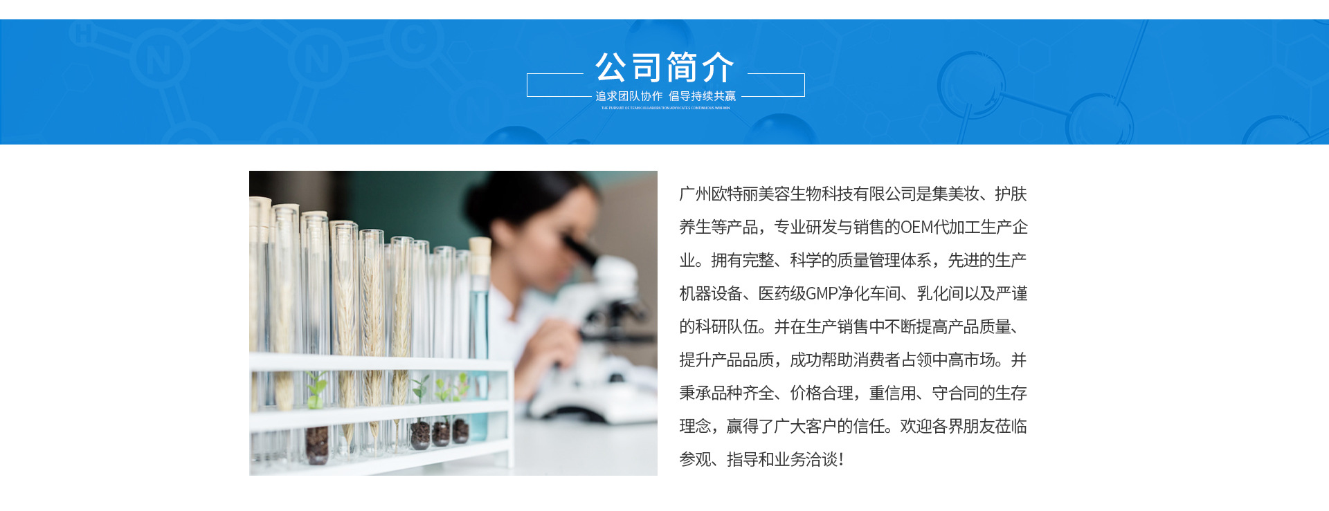 歐特麗美容生物科技是集美妝、護(hù)膚養(yǎng)生等產(chǎn)品,專業(yè)研發(fā)與銷售的OEM代加工生產(chǎn)企業(yè)。擁有完整、科學(xué)的質(zhì)量管理體系,先進(jìn)的生產(chǎn)機(jī)器設(shè)備、醫(yī)藥級(jí)GMP凈化車間、乳化間以及嚴(yán)謹(jǐn)?shù)目蒲嘘?duì)伍。并在生產(chǎn)銷售中不斷提高產(chǎn)品質(zhì)量、提升產(chǎn)品品質(zhì),成功幫助消費(fèi)者占領(lǐng)中高市場(chǎng)。并秉承品種齊全、價(jià)格合理,重信用、守合同的生存理念,贏得了廣大客戶的信任。歡迎各界朋友蒞臨參觀、指導(dǎo)和業(yè)務(wù)洽談