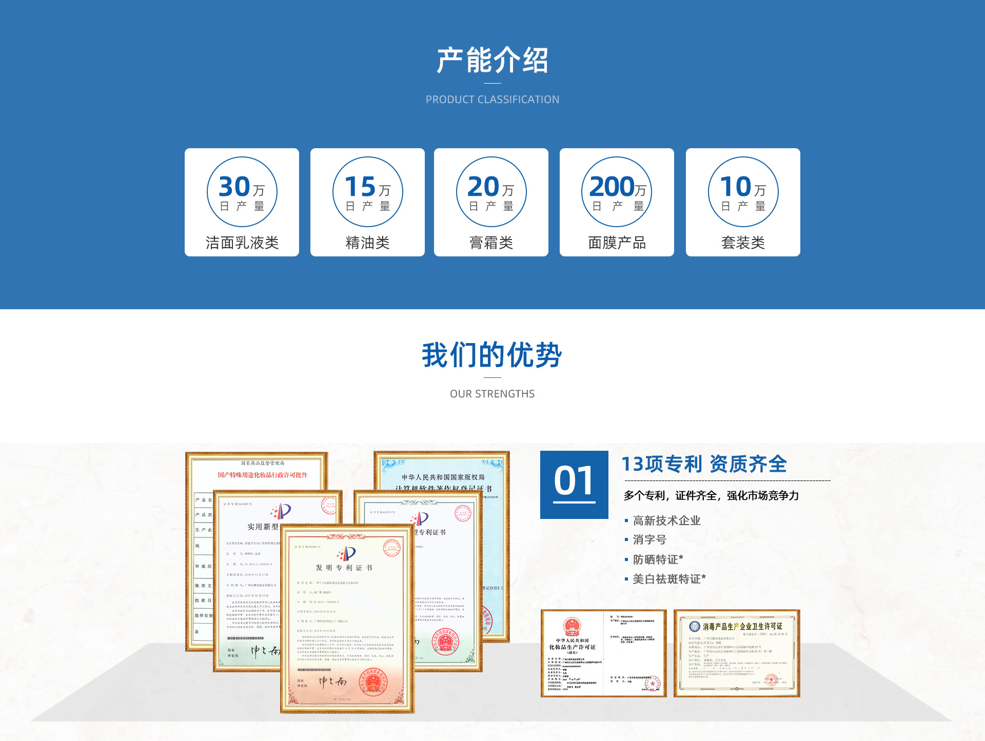 大澳集團 創(chuàng)立于2008年,是中國領先的化妝品研發(fā)OEM制造企業(yè),隸屬于廣州大澳化妝品有限公司,是一家集研發(fā)、生產、銷售、咨詢、投資于一體的集團化公司。大澳堅持“產品即競爭力”的思想,為國內外化妝品品牌客戶提供品牌策劃、創(chuàng)意設計、包裝配套、研發(fā)生產等一站式解決方案,從多個維度為美妝品牌企業(yè)提供一站式服務,旨在幫助客戶打造真正的暢銷產品。 大澳集團在中國擁有1家生物抗衰老技術研究院和2個總面積超200000平方的生產基地,工廠擁有“ISO”認證及國際 GMPC雙認證。目前擁有20條MPC自動化的生產線和配套的國際、國內先進乳化灌裝設備,擁有全套檢驗、檢測、殺菌、色譜分析等儀器科研設備。日產量達100萬支,累計服務過的國內國際品牌超過3000家,產品遠銷國內外及地區(qū)。