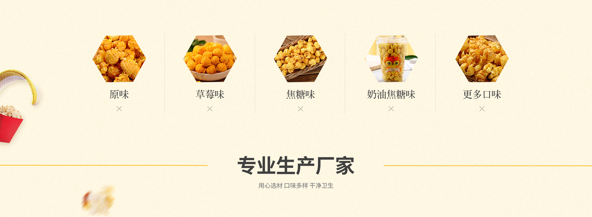 六安市金果兒食品成立于2014年 本公司主要生產膨化食品,爆米花,餅干 鍋巴為主的企業,工廠生產面積1500平米。