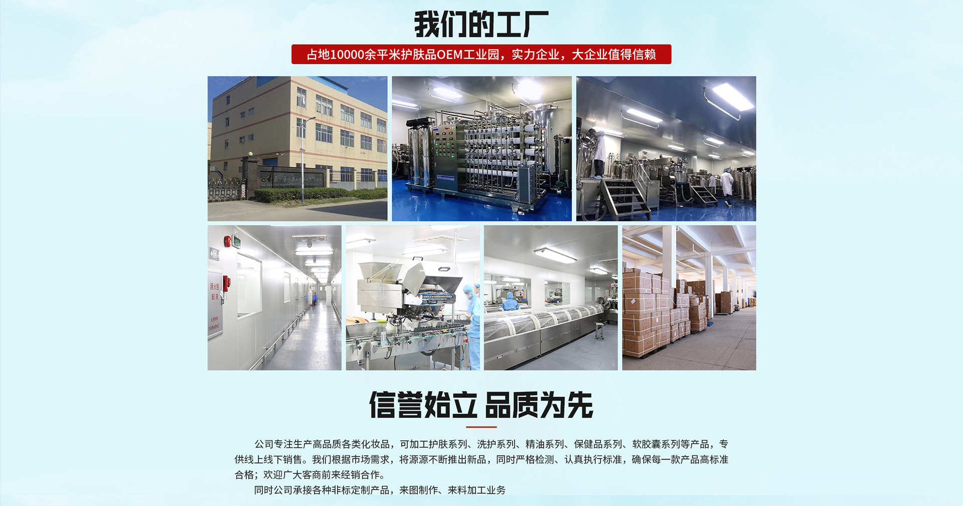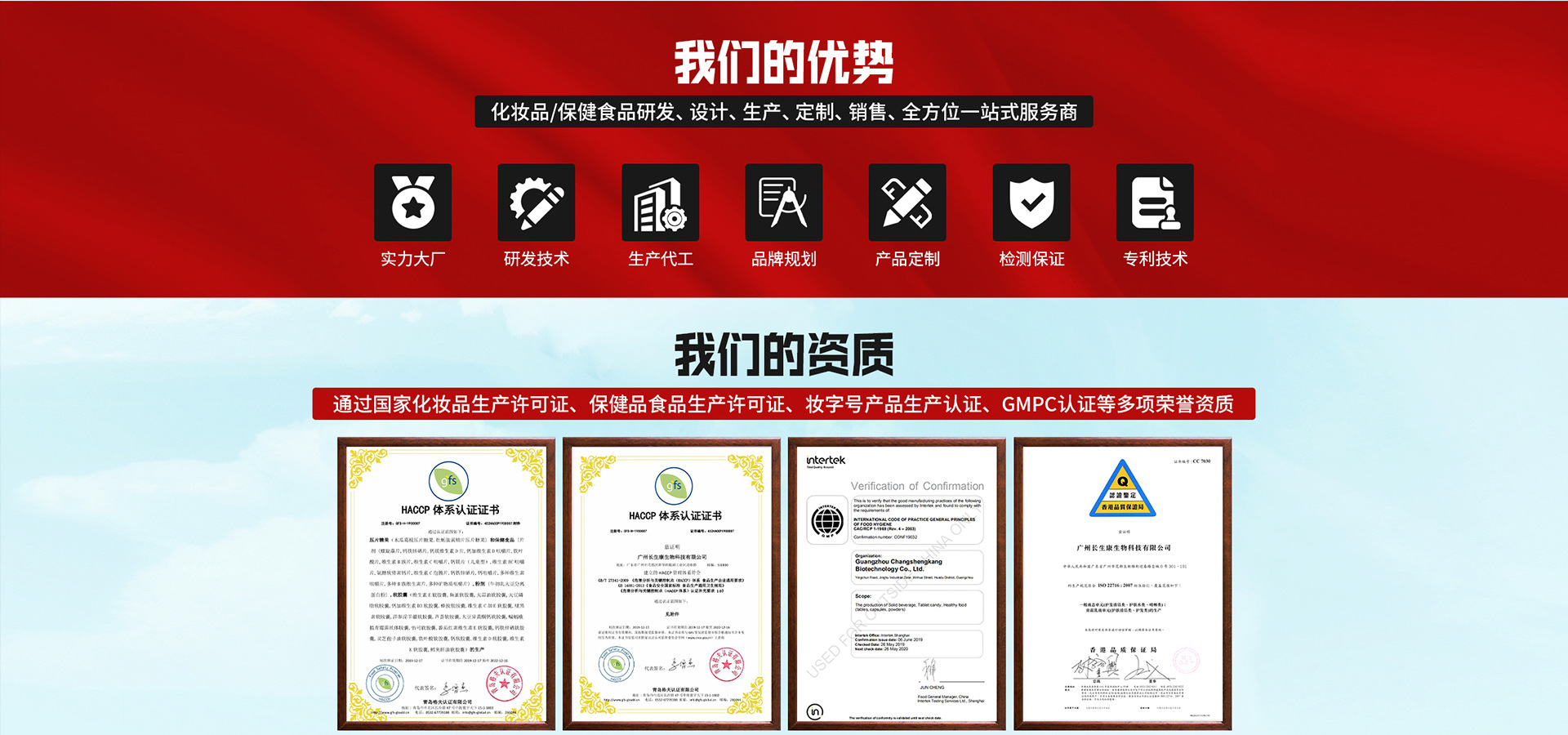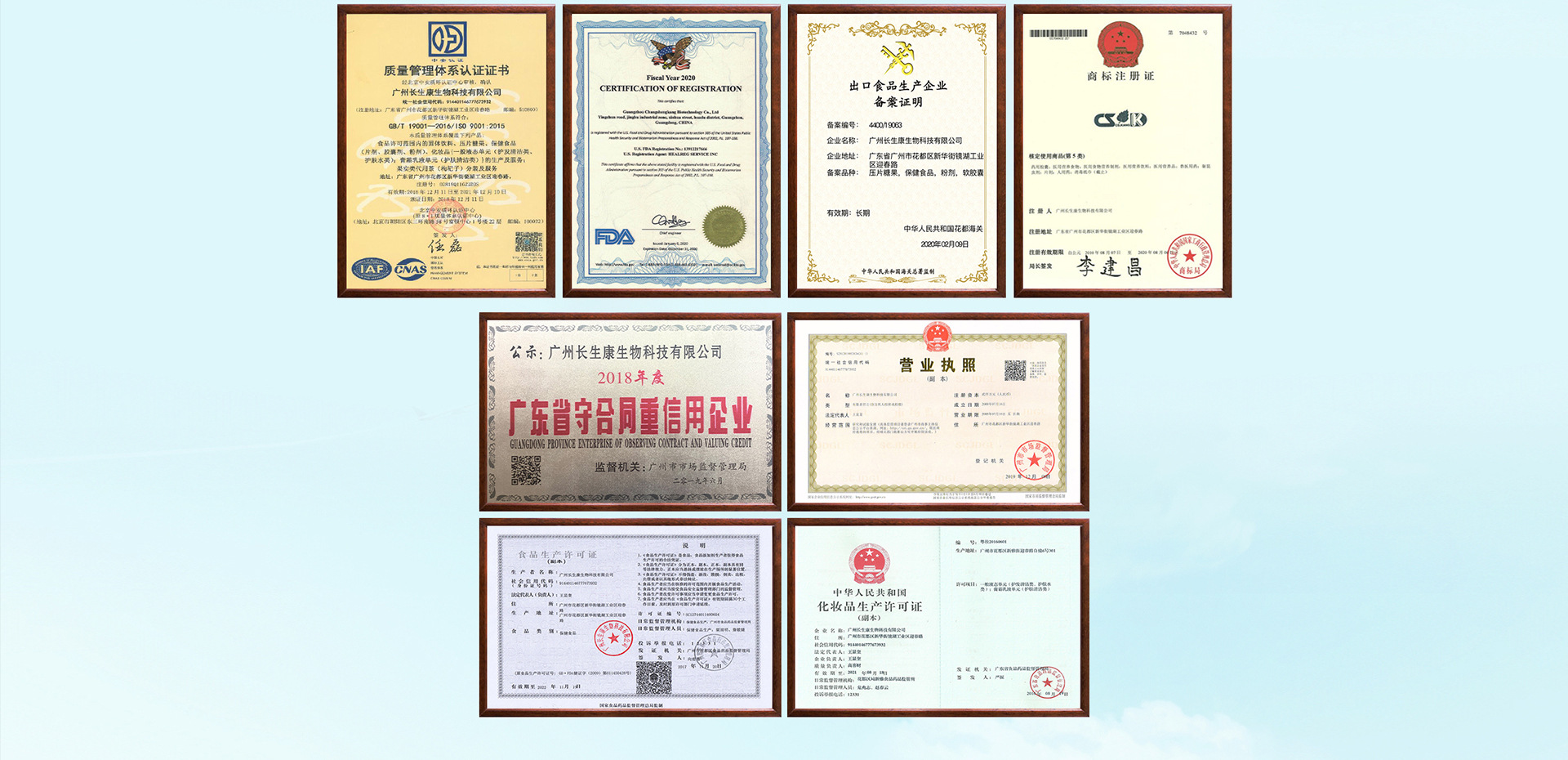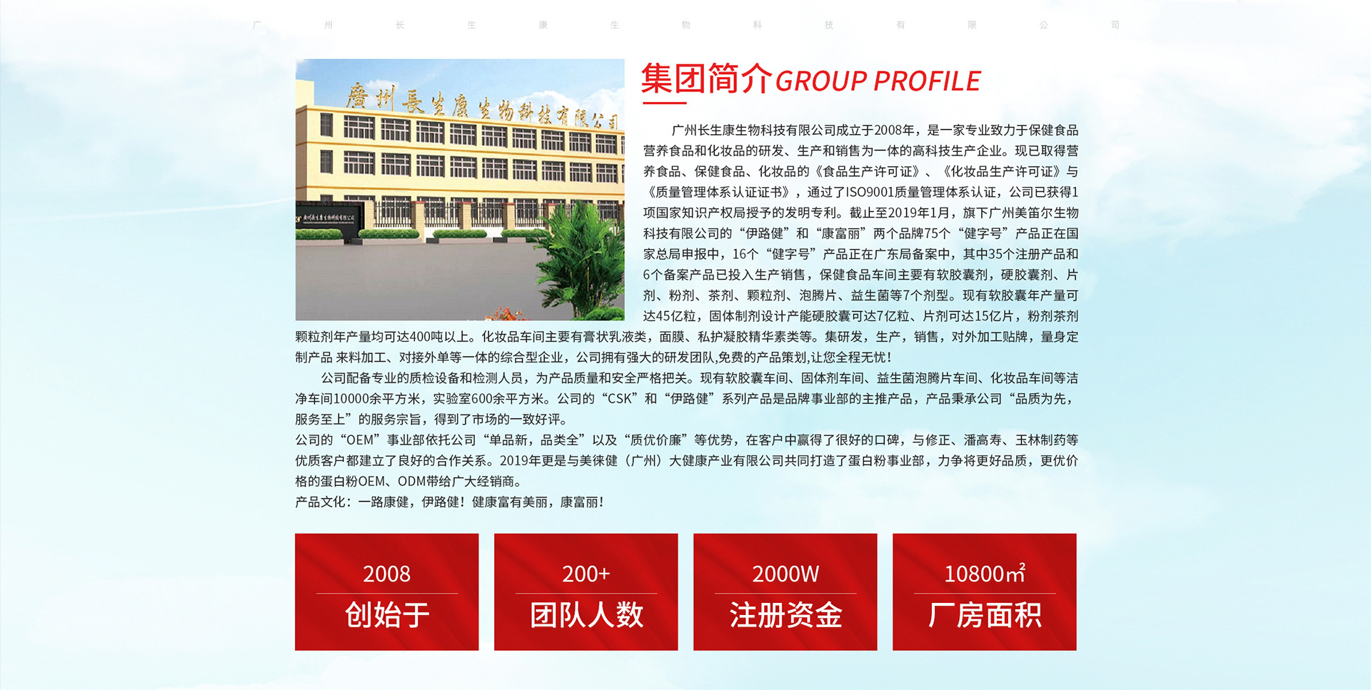 廣州長(zhǎng)生康生物科技有限公司成立于2008年,是一家專(zhuān)業(yè)致力于保健食品、營(yíng)養(yǎng)食品和化妝品的研發(fā)、生產(chǎn)和銷(xiāo)售為一體的高科技生產(chǎn)企業(yè)。現(xiàn)已取得營(yíng)養(yǎng)食品、保健食品、化妝品的《食品生產(chǎn)許可證》、《化妝品生產(chǎn)許可證》與《質(zhì)量管理體系認(rèn)證證書(shū)》,通過(guò)了ISO9001質(zhì)量管理體系認(rèn)證,公司已獲得1項(xiàng)國(guó)家知識(shí)產(chǎn)權(quán)局授予的發(fā)明專(zhuān)利。截止至2019年1月,旗下廣州美笛爾生物科技有限公司的“伊路健”和“康富麗”兩個(gè)品牌75個(gè)“健字號(hào)”產(chǎn)品正在國(guó)家總局申報(bào)中,16個(gè)“健字號(hào)”產(chǎn)品正在廣東局備案中,其中35個(gè)注冊(cè)產(chǎn)品和6個(gè)備案產(chǎn)品已投入生產(chǎn)銷(xiāo)售,保健食品車(chē)間主要有軟膠囊劑,硬膠囊劑、片劑、粉劑、茶劑、顆粒劑、泡騰片、益生菌等7個(gè)劑型。現(xiàn)有軟膠囊年產(chǎn)量可達(dá)45億粒,固體制劑設(shè)計(jì)產(chǎn)能硬膠囊可達(dá)7億粒、片劑可達(dá)15億片,粉劑、茶劑、顆粒劑年產(chǎn)量均可達(dá)400噸以上。