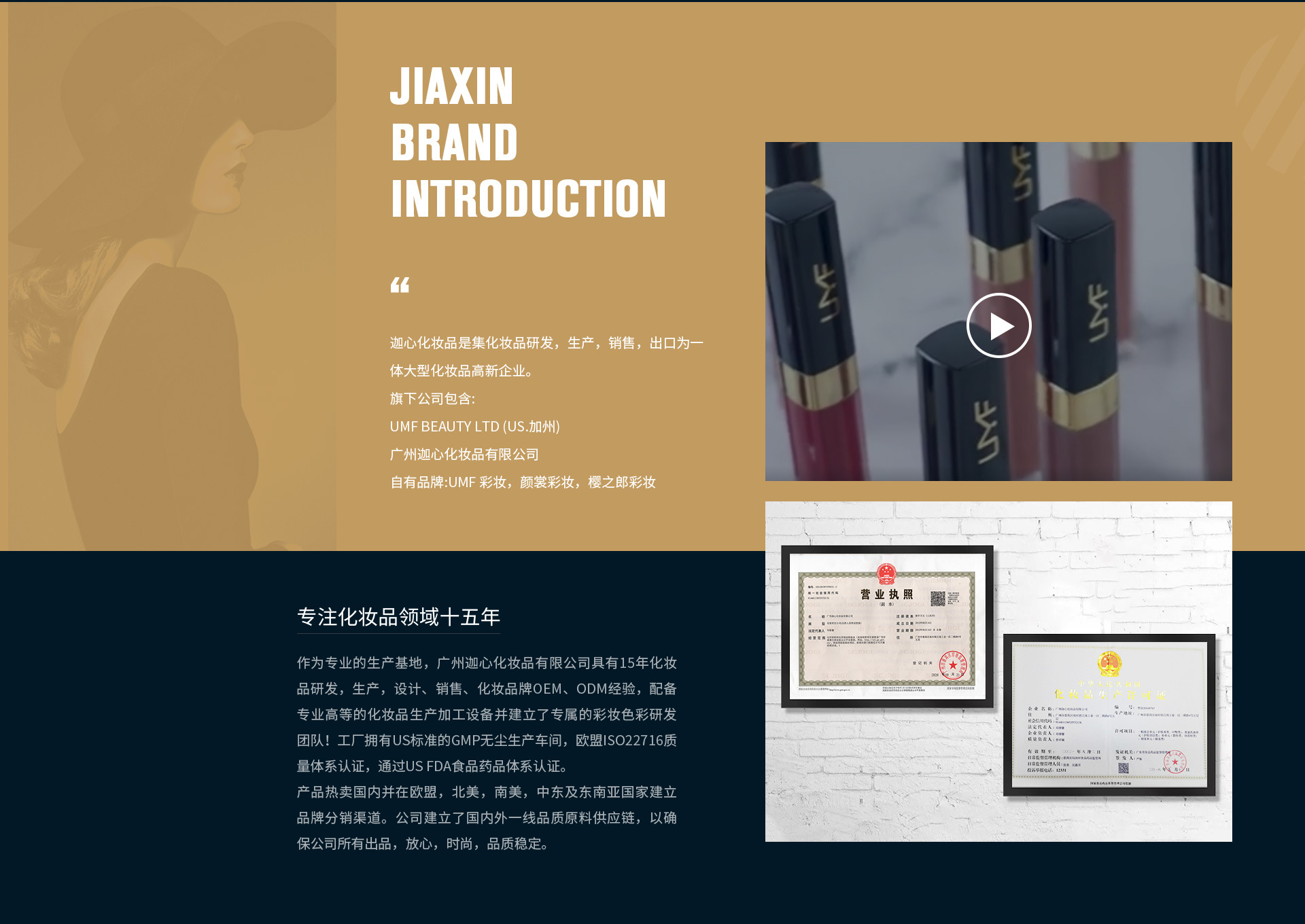 廣州迦心化妝品有限公司是彩妝、化妝品、化妝品包材等產品專業生產加工的公司,擁有完整、科學的質量管理體系。廣州迦心化妝品有限公司的誠信、實力和產品質量獲得業界的認可。歡迎各界朋友蒞臨參觀、指導和業務洽談。