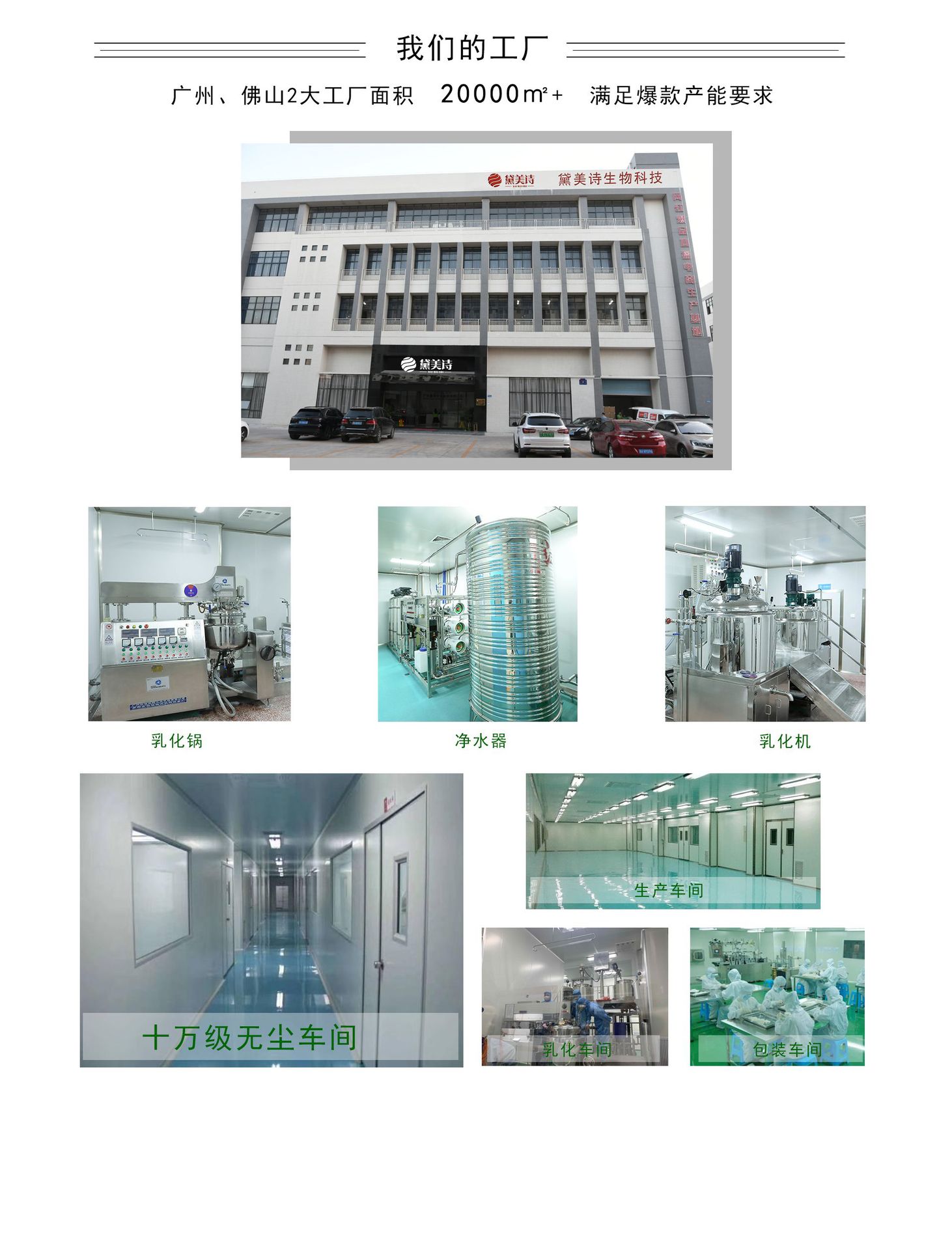 廣東黛美詩生物科技有限公司是化妝品、日化、面膜、護膚等產品專業生產加工的公司,擁有完整、科學的質量管理體系,服務于國內多家知名品牌,自主研發調配符合東方人膚質的配方,承接各類OEM、ODM,來樣加工等。 本公司致力于服務品牌電商代工、美容院代加工,真誠幫助客戶實現化妝品事業成功的夢想。尊重品牌客戶的不同需求,推出多套OEM解決方案,可為您生產出符合國際標準的優質化妝品。優惠的價格、快速的反應、直接的溝通盡顯盈姿服務的省心和專業。 一、廣東黛美詩生物科技有限公司主要客戶群: (1) 外商OEM貼牌加工 (2) 外貿公司有化妝品訂單 (3) 專業線,美容院想做自己品牌 (4) 有化妝品行業經驗的投資者要貼牌加工做品牌 (5) 想貼牌開發新品牌的經銷商或代理商 (6) 想自創品牌的代理商或經銷商 (7) 想改行投資化妝品行業的投資商 (8) 您擁有自己品牌的經銷商 (9) 剛入行經驗較少