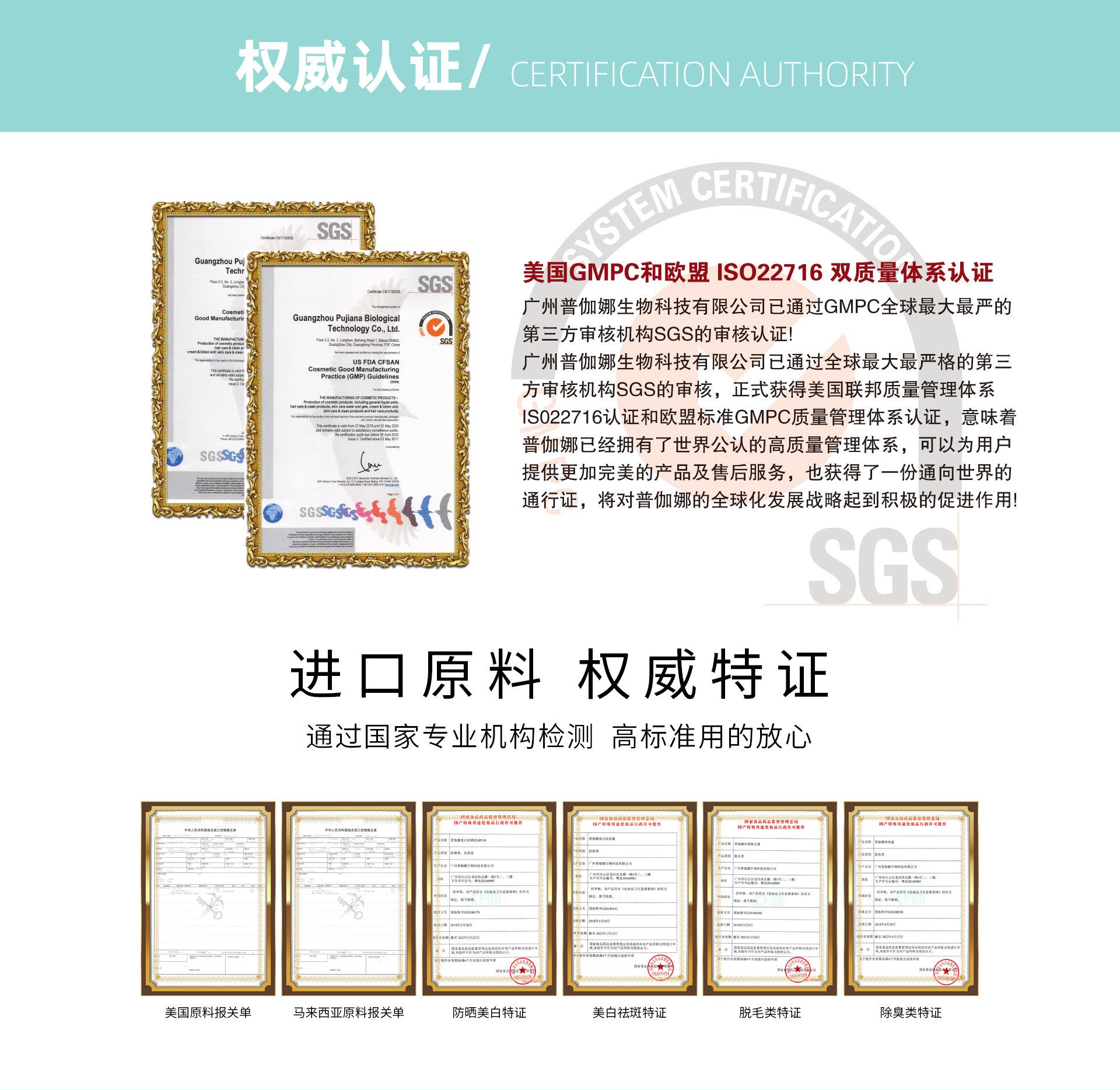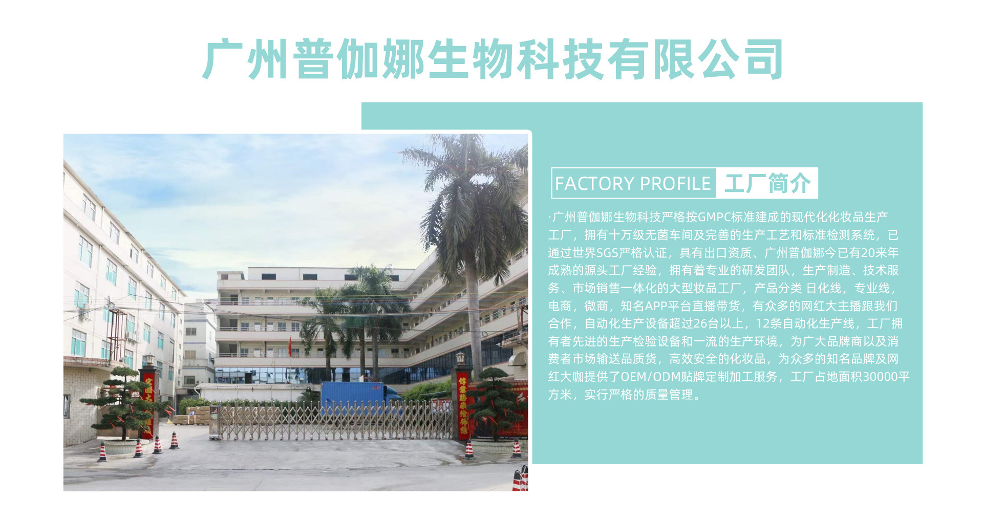 廣州普伽娜生物科技嚴(yán)格按GMPC標(biāo)準(zhǔn)建成的現(xiàn)代化化妝品生產(chǎn)工廠,擁有無菌車間及完善的生產(chǎn)工藝和標(biāo)準(zhǔn)檢測系統(tǒng),已通過世界SGS嚴(yán)格認(rèn)證,只有通過了SGS認(rèn)證的化妝品工廠,才具有出口的資質(zhì),廣州普伽娜是一家集化妝品研制開發(fā)、生產(chǎn)制造、技術(shù)服務(wù)、市場銷售、OEM品牌加工五種一體現(xiàn)代化大型生產(chǎn)工廠,工廠占地面積12000平方米,以GMPC標(biāo)準(zhǔn)作為產(chǎn)品生產(chǎn)的總體要求,車間內(nèi)設(shè)有十萬級生產(chǎn)區(qū),實(shí)行嚴(yán)格的質(zhì)量管理。