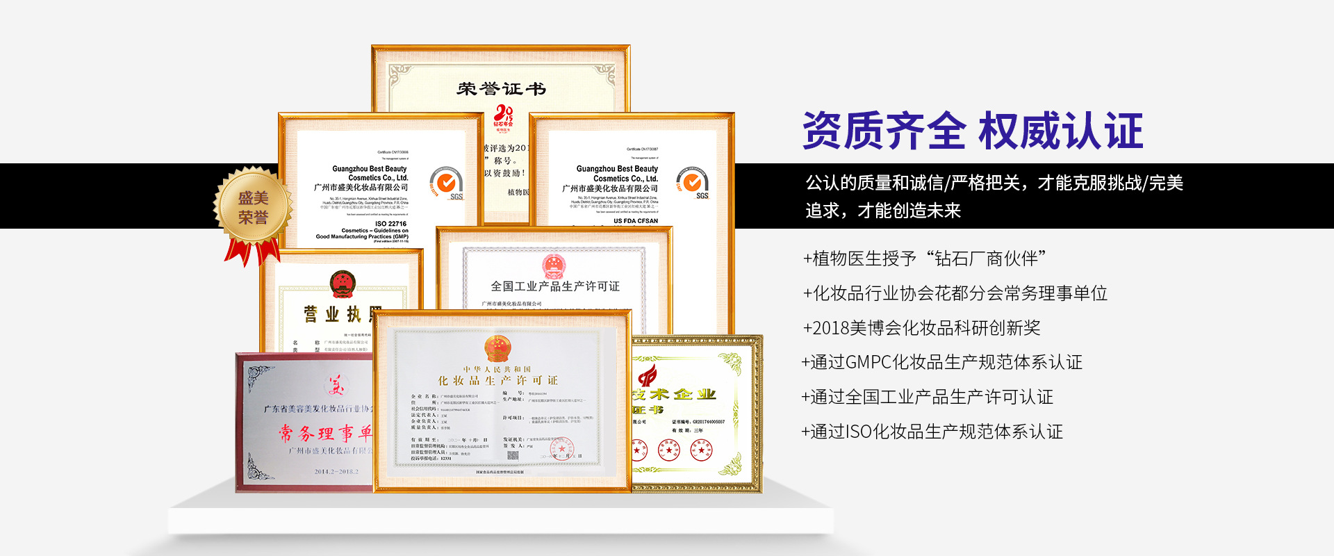 廣州市盛美化妝品有限公司前身名為玫諾斯日用化學公司,成立于2005年。2007年遷至花都,并注冊為廣州市盛美化妝品有限公司。我們專注耕耘化妝品加工領域十五年,是一家集化妝品研究、開發、生產、OEM、ODM代加工為一體的綜合性大型企業。公司秉承“專注產品品質,助力民族品牌”的使命,為客戶提供全方位的美容、護膚、護發、洗滌等產品的生產加工服務。 公司占地面積達18000平方米,擁有1500平方米的技術研發中心,通過了ISO22716及美國FDA化妝品良好生產規范認證,榮獲“高新技術企業”稱號,建立了一系列基于國家標準及行業標準企業內控。從產品線的設計與配方的開發、原材料的安全性評估、生產過程的精益求精、產品上市后的質量追蹤全過程均有效控制,使盛美成為眾多一線化妝品品牌的生產基地。