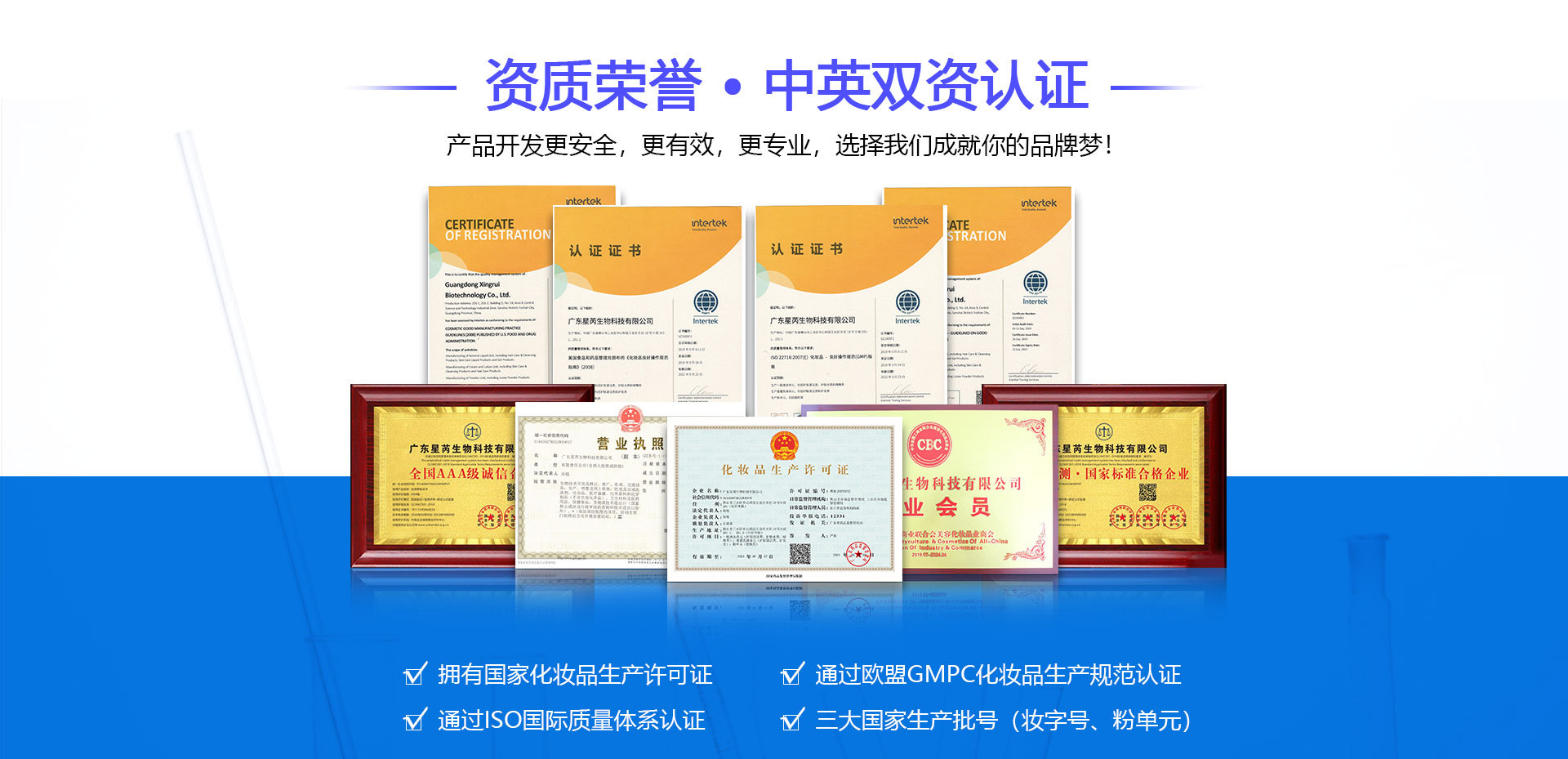 廣東星芮生物科技有限公司服務化妝品行業18年,總部在廣州天河,工廠位于佛山國家級高新科技園,專注提供專業的代加工OEM/ODM和品牌營銷服務,旗下主營業務涉及護膚品、化妝品、大健康養生、品牌打造等多個領域。廣東星芮作為擁有國際化、專業化、系統化、的強大資源,是集專業生產與媒體屬性于一身的創新型工廠。 公司所有產品均通過世界權威機構檢測及國家食品藥品監督管理局備案、安全有效,品質可靠有保障。品牌起步,新品開發,老品改造等系統化多方向的服務是我們獨有的優勢。