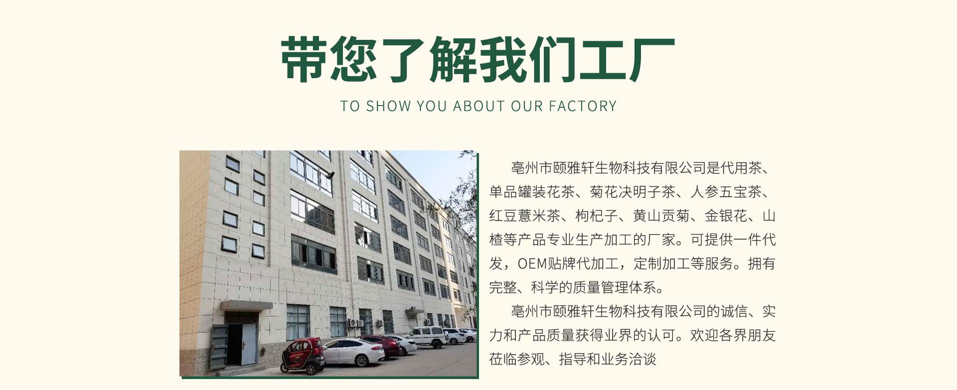 本公司是各種花茶系列, 貼牌加工等產品專業生產的公司, 擁有完善科學的質量管理體系 專注花茶多年,每個產品的包裝都很規范,加工細致SC認證企業·一站式OEM`貼牌代加工