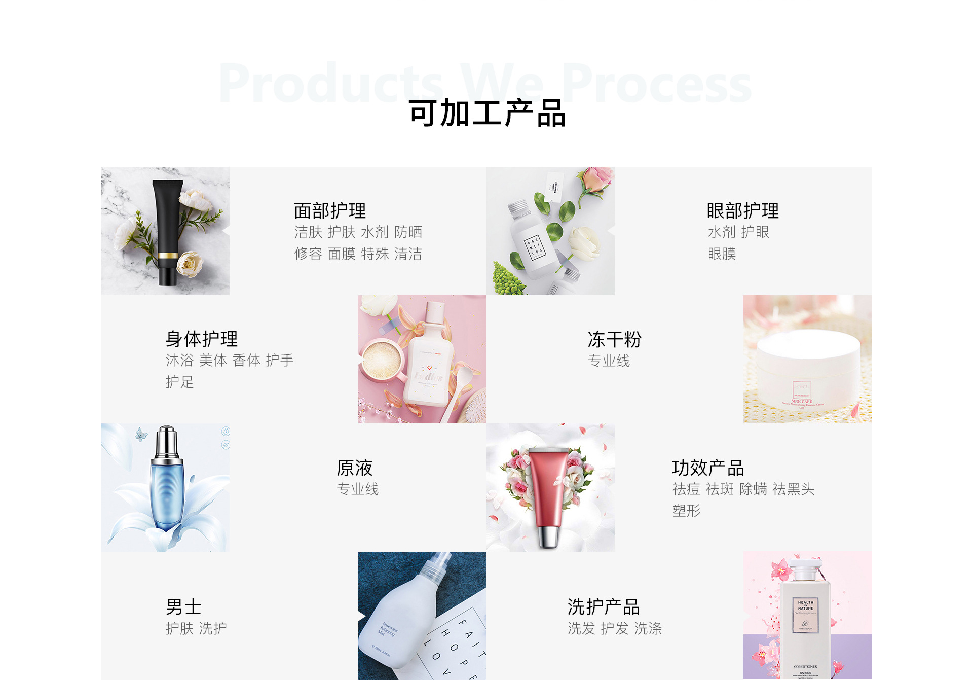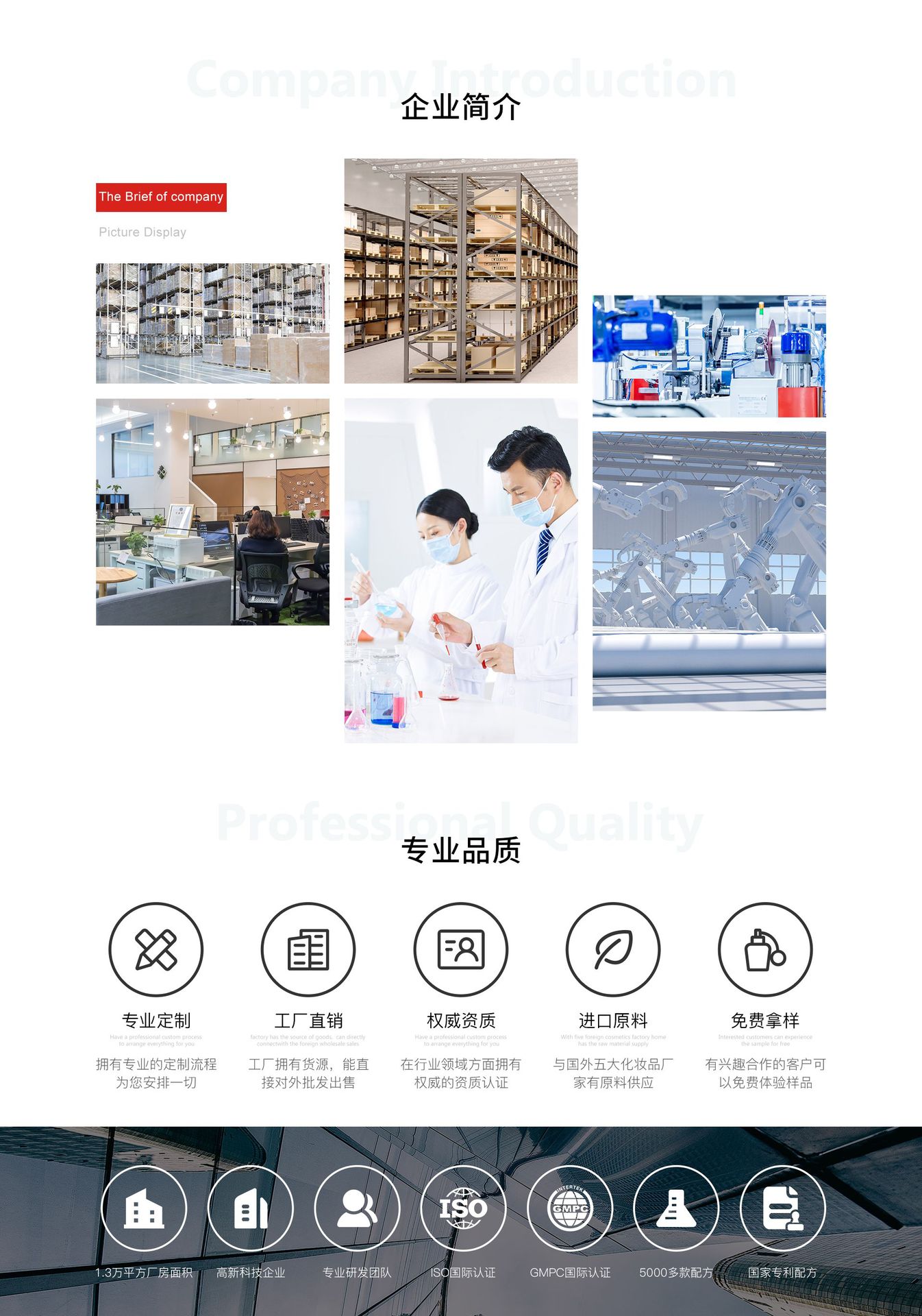 鑫龍化妝品廠是一家集化妝品研發、生產、銷售、服務于一體的大型化妝品公司,位于交通便捷、物流發達的廣東。提供專業化妝品加工OEM/ODM,天然植物精油加工,在行業內頗具口碑、影響力,曾協助國內外數百個化妝品 品牌成功上市。本公司擁有現代化的生產設備,GMP生產車間,先進的ERP企業管理體系,并組建了一支由資深美容科研發專家、醫學教授、博士等組成的精英研發隊伍。與廣東藥科大學化妝品研究中心核心成員強強聯手,引入高科技臨界萃取技術,將天然植物及中草藥有效成分應用于化妝品中,構建了集產品研發、項目服務、信息交流于一體的現代化研發體系,致力于為客戶提供好品質的產品。 一站式服務,協助您輕松擁有自己的化妝品品牌,設有專業化妝品加工品牌策劃部,傳媒廣告設計部,包材、原料采購部,產品研發中心。從策劃、設計、研發、采購、生產、出貨每一個環節均由本公司一體化,一站式精心打造。省去了您既找化妝品加工