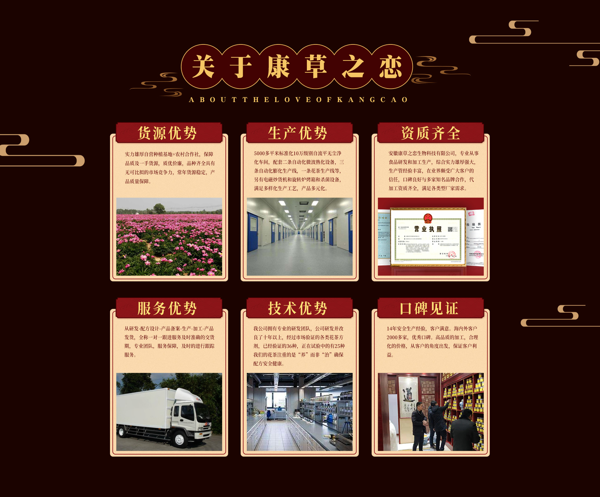安徽美草生物科技有限公司坐落于藥都之鄉.華佗故里,安徽省亳州市現代中藥產業創業基地,公司起源于2006年,新廠成立于2020年,注冊資金1000萬元整,公司占地5000平方米,總建筑面積2500平方米,公司員工220人,其中生產團隊160人,研發團隊5人,銷售團隊20人,后勤物資采購25人。安徽美草生物科技有限公司是專業從事健康養生花茶,調味茶,固體飲料,壓片糖果,方便食品,固態調味研發生產銷售。致力于養生理念發掘并應用各種純天然草本健康養生資源。期待與您合作,攜手共創輝煌。我公司以質量求生存,以誠信求發展,在全面的質量控制下使產品質量得到更有效的保障,合理的價格優質的產品,良好的服務,是我們對客戶的承諾,歡迎各界朋友蒞臨參觀,指導和業務洽談。