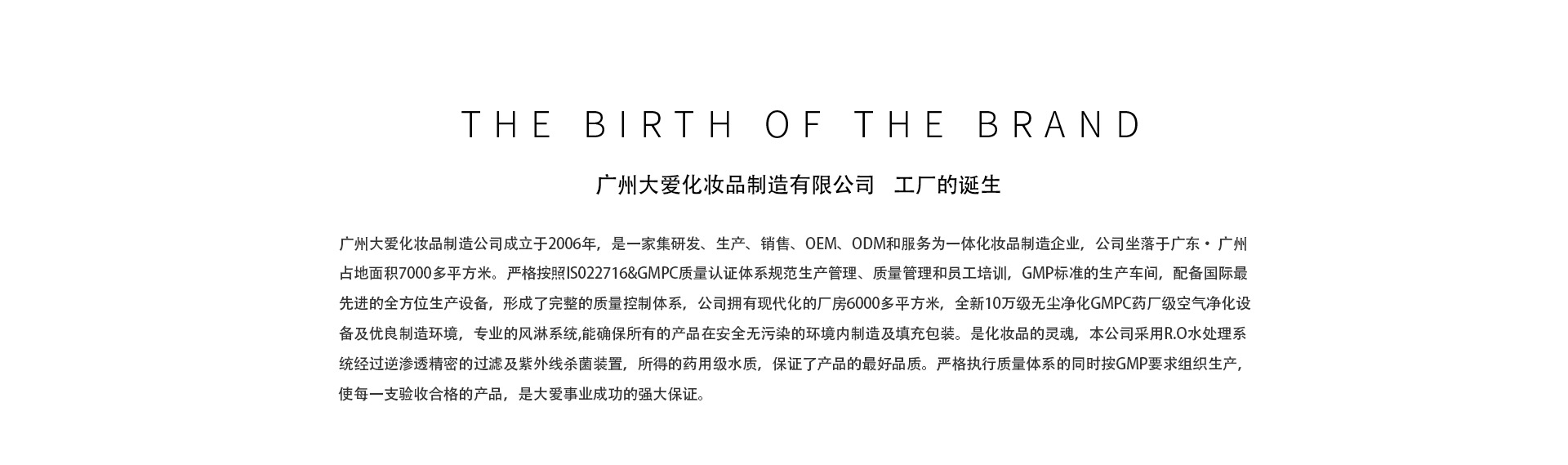 廣州大愛化妝品制造有限公司是洗發(fā)水、護發(fā)素、沐浴露、發(fā)膠、發(fā)膜倒模、原料等產(chǎn)品專業(yè)生產(chǎn)加工的公司,擁有完整、科學的質(zhì)量管理體系。廣州大愛化妝品制造有限公司的誠信、實力和產(chǎn)品質(zhì)量獲得業(yè)界的認可。歡迎各界朋友蒞臨參觀、指導和業(yè)務(wù)洽談。