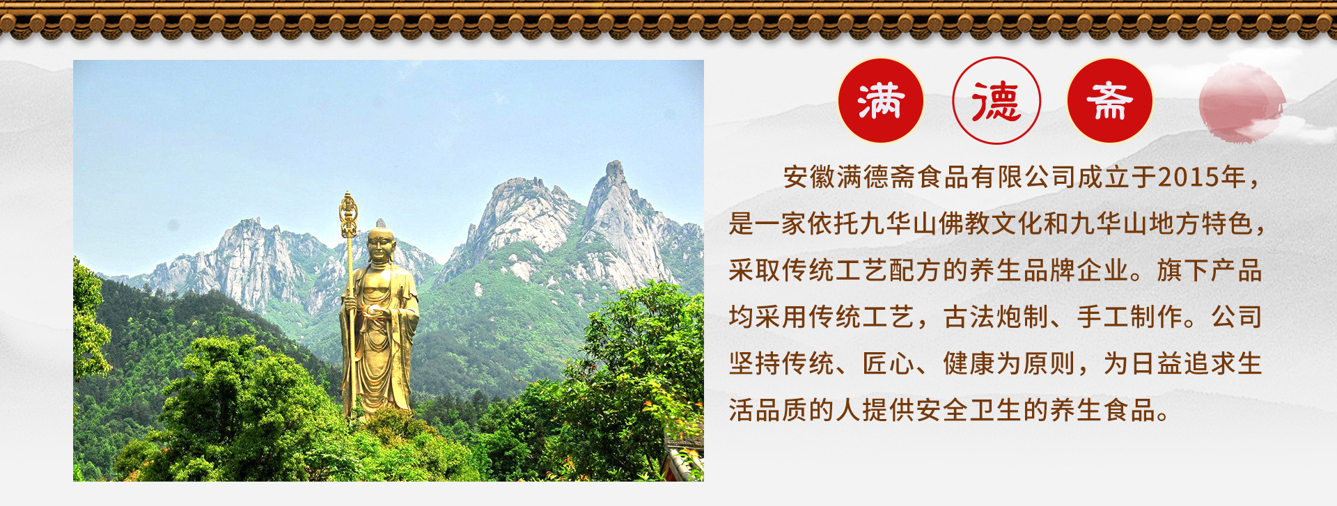 安徽滿德齋食品有限公司,安徽老字號企業(yè)。主營九蒸九曬芝麻丸、紅豆薏米丸、九蒸九曬黃精、檸檬膏、姜糖膏、桑葚膏、四物膏、八珍膏等滋補膏等。安徽滿德齋食品有限公司成立與2015年,注冊資本1000萬,是一家專業(yè)從事黃精種植、加工、銷售、研發(fā)的企業(yè)。滿德齋積極傳承古法九蒸九曬工藝,專注于古法養(yǎng)生領(lǐng)域。互聯(lián)網(wǎng)+農(nóng)業(yè)+工廠實現(xiàn)產(chǎn)銷一體化。產(chǎn)品銷往全國各地深受好評。公司秉承“以質(zhì)量求生存; 以誠信贏發(fā)展”的經(jīng)營理念,堅持“貨真價實”的原則為廣大客戶提供優(yōu)質(zhì)的服務(wù)。歡迎惠顧!