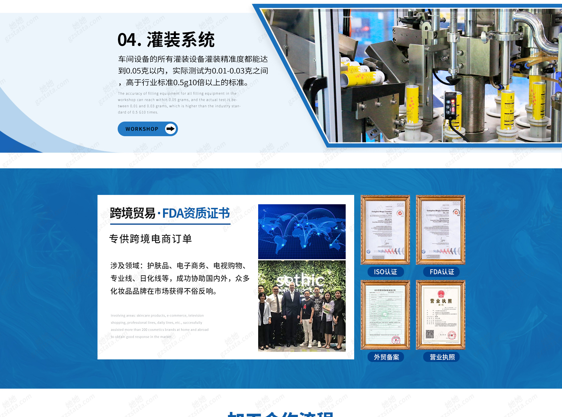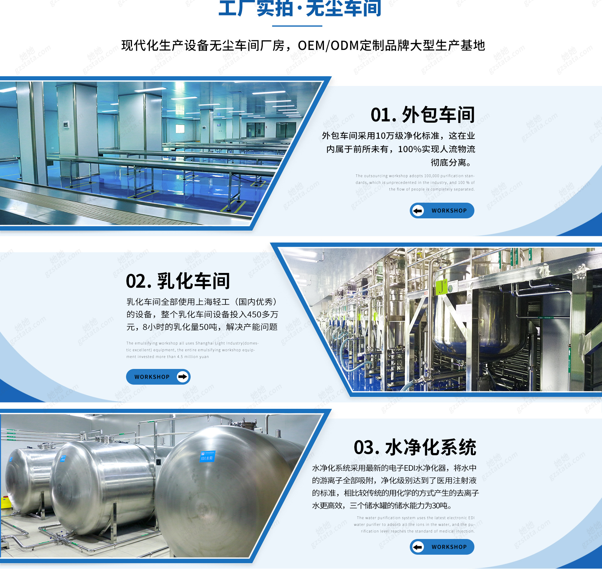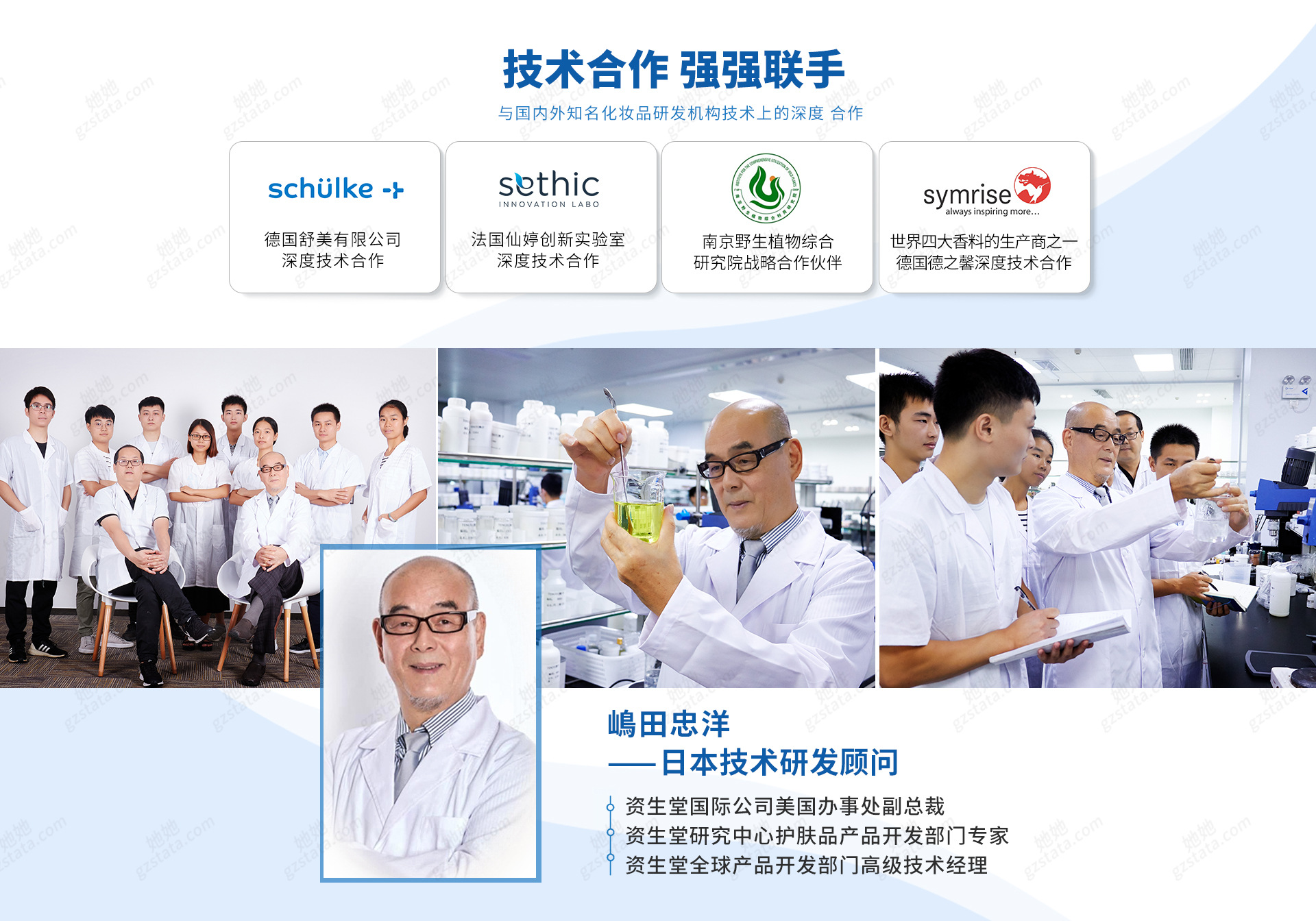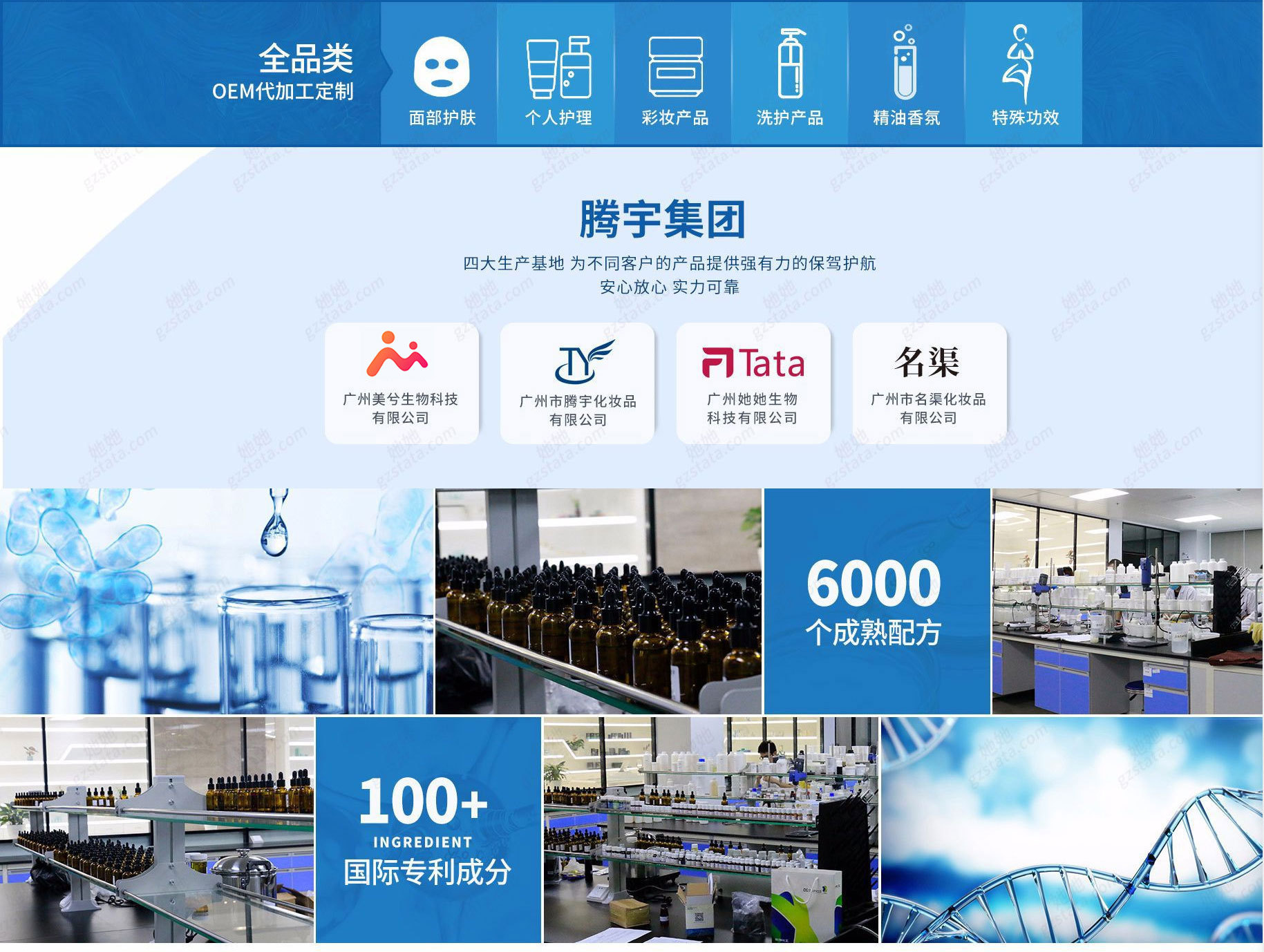 廣州她她生物科技有限公司是一家集德國、日本、意大利等國先進技術于一體,年生產能力達數千噸的大型化妝品生產基地,工廠占地面積8000平方米,全套生產線嚴格按GMP標準設計投產,達到微菌化標準:全面引進享譽全球的德國IKA公司乳化均質機、英國克藍公司密封裝置、德國ABB高速電機和英國原裝噴碼機等當今國際一流的生產設備、全自動物流配送中心、計算器組成的物控管理網絡實現倉儲、生產、配送全方位智控系統。 采用國際最新生產工藝、先進的生產檢測設備和無菌生產車間、完善的質保體系、精挑細選的產品原料、確保了產品的高質量和安全性。公司設有高規格的研發中心和PMC中心,中、高級專業技術人員占員工總數的30%。公司以專業的研發能力為基礎,憑著先進的國際化標準廠房和生產設備,致力于高品質化妝品的研發和制造,為自有品牌以及加工客戶提供適應市場需要的高品質產品。