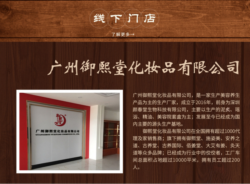 廣州御熙堂化妝品有限公司,一家集生產、銷售一體的化妝品源頭廠家。工廠專業生產草本泥灸、瑤浴包、藥油、精油,面膜、護膚品、面部及身體養生套盒。工廠支持貼牌生產,免費提供從設計到銷售一條龍服務。工廠實力雄厚,資質齊全。產品質量及服務能力都在行業名列前茅,歡迎各位新老朋友、行業精英們多多關照,共創財富!