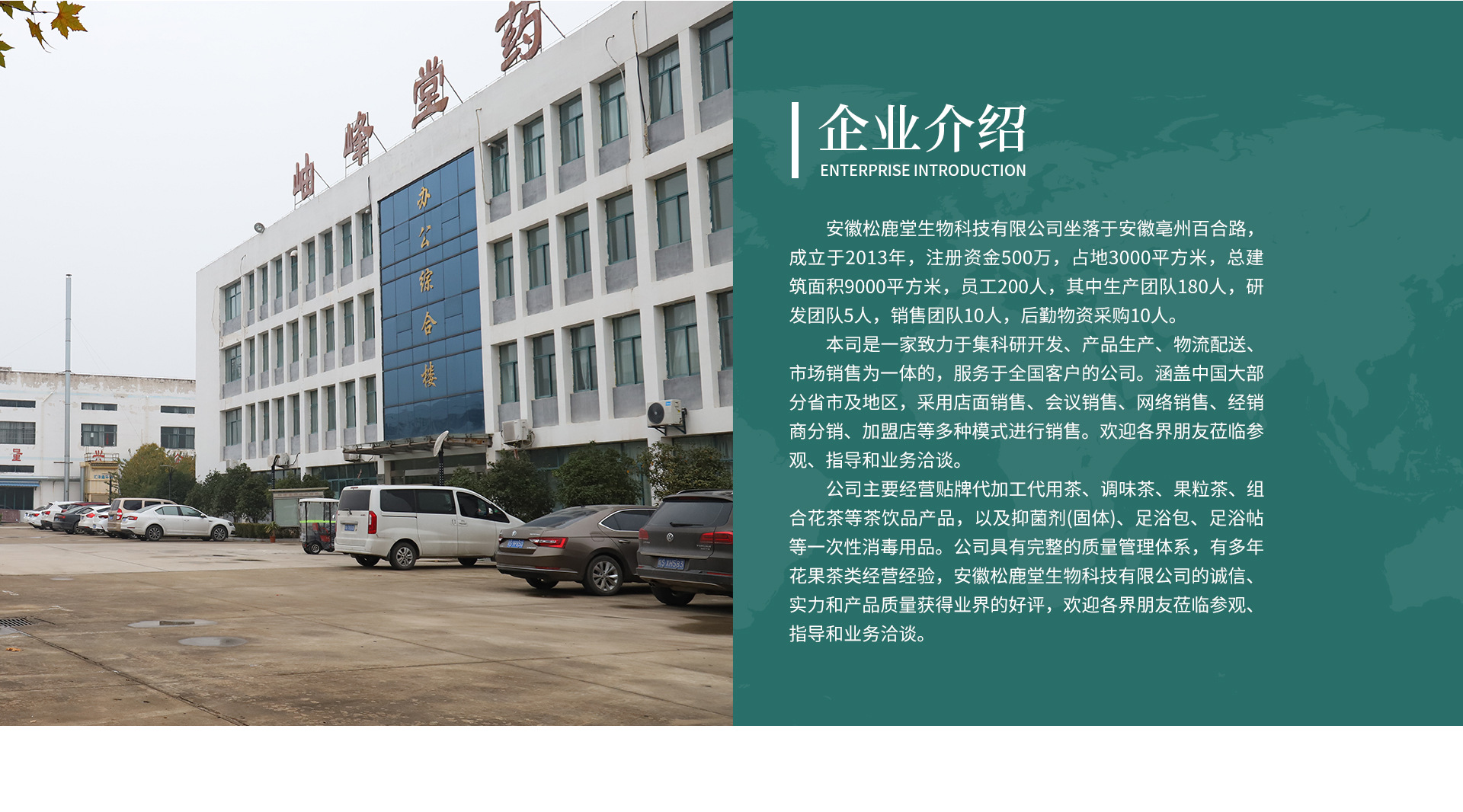 安徽松鹿堂生物科技有限公司成立于2019年,主要經營各類花草茶、膏滋、代餐粉、代餐粥、足浴包、壓片糖果等。員工總數100人,研發人員2名。廠房面積2500平方米。