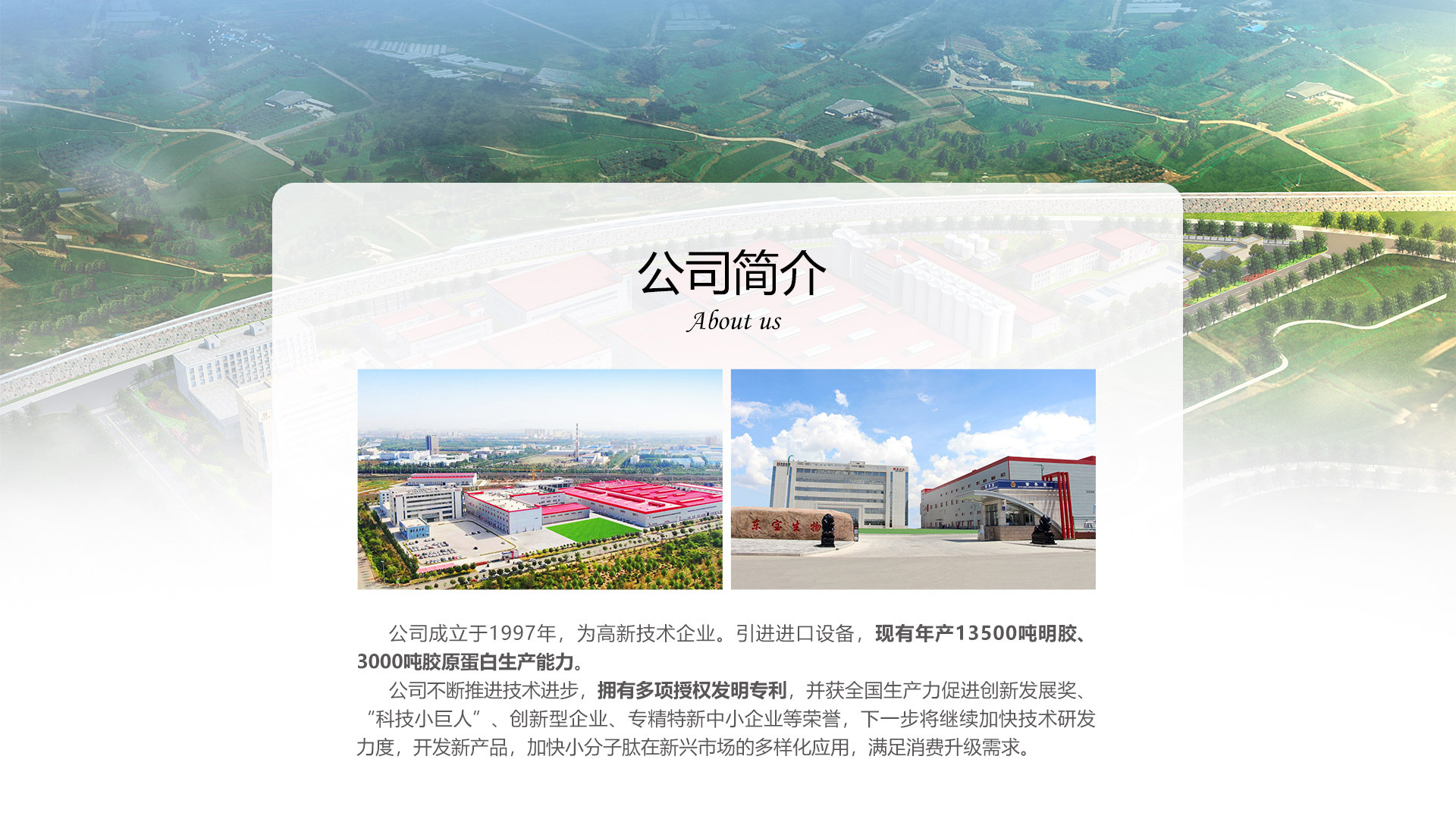 包頭東寶生物技術股份有限公司成立于1997年(其前身包頭市精膠廠始建于1960年),為高新技術企業,創業板上市公司。公司屬生物科技行業,符合國家健康產業規劃發展方向,是國家鼓勵發展的戰略新興產業,也是自治區黨委十屆二中全委會列明的七大新興業態之一。主營產品“金鹿”牌明膠、“圓素”牌膠原蛋白及“白云”牌骨源磷酸氫鈣。公司總股本5.2億元,總資產近14億元,近年來,公司開拓創新、狠抓企業發展關鍵要素,取得了良好的經營效果,主營產品產銷量均有較大增長。 東寶生物現有年產13500噸明膠、3000噸膠原蛋白生產能力,后續將推出“人造肉”,健康營養補充劑等延伸產品。未來,公司除積極拓展現有業務外,還將加大抑制癌細胞增殖作用的膠原蛋白活性肽、改善廢用性骨質疏松膠原蛋白、明膠靜電紡絲生物藥械材料、醫用膠原水解物(代血漿明膠)等前沿技術的研發力度,以優質的產品和超值的服務搶占大健康市場