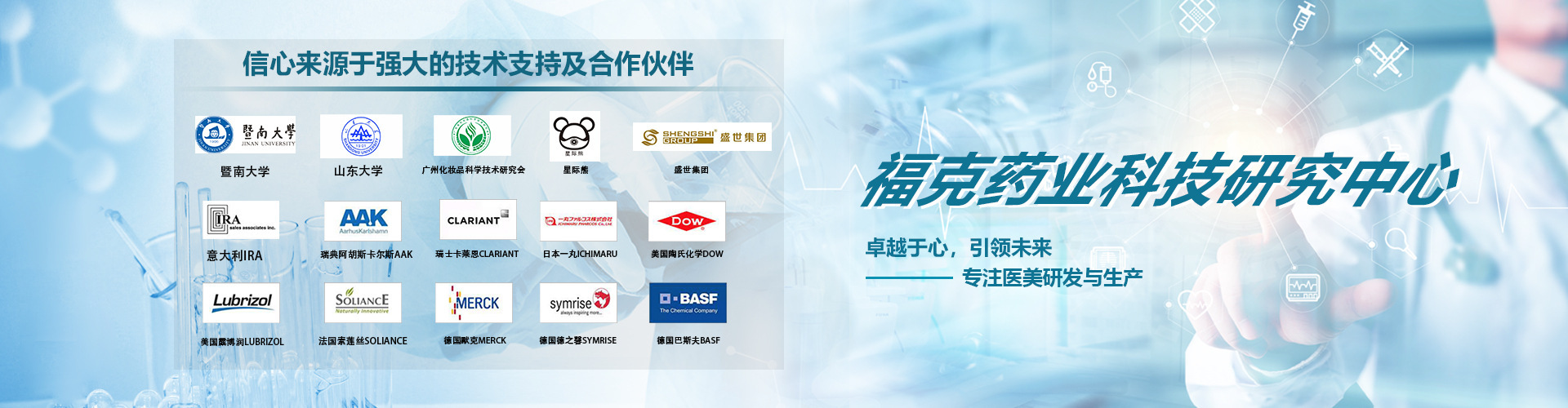 福克藥業是一家集醫美化妝品的研發、生產、銷售、服務,培訓于一體的大型化妝品公司。公司位于交通便利的廣州市白云區龍歸南嶺,占地面積14000平方米,是國內為數不多獲得美標GMPC認證及ISO22716證書的企業,工廠采用10萬級GMPC標準建造的車間,無污染化設計,并擁有9條國際化的線粒體激動因子干細胞填充.面部抗衰全系.身體塑形溶脂素.面膜,膏霜、原液,洗滌等產品全自動生產流水線,擁有高效的產能,可滿足巨大的市場需求。公司主要以化妝品的研究、開發為主。為提供客戶OEM和ODM的專業服務,能針對客戶所需的產品規格和需求,進行開發和設計,以高品質、安全、有效的產品滿足客戶的需求。 公司不斷引進具有尖端生物高科技的產品供應源,秉承中國傳統的美容與養生文化,融合西方高科技的美容營養學,公司目前已超出概念競爭的舊有格局,進入到里程碑式的發展階段,并逐漸樹立專業美容的競爭標尺。 同時,高素質的人才隊伍