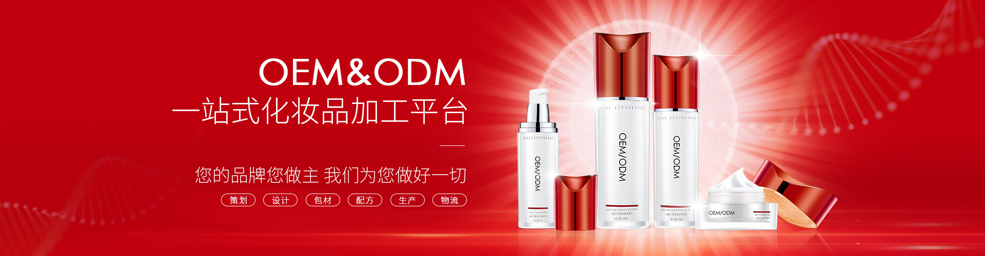 廣州嬌美生物科技有限公司,是一家極富創新精神的化妝品廠家加工(OEM/ODM)服務企業。嬌美自創立以來,與廣大國內外客戶平臺共享,專注于全球化妝生產加工OEM貼牌加工服務,大型美容院化妝品直供,為客戶提供高品質原料及品牌策劃服務。擁有全新的10萬級國際領先的GMP標準廠房,國際標準生產線,通過了ISO9001:2000國際質量體系認證,以穩固的資本實力依托、完善的產品結構支撐、先進的技術含量滲透,為客戶締造一流的品牌。 公司現與百余家國內外代工客商保持長期密切合作,以誠信與實力,深得國內外廣大客戶的依賴!十余年的行業沉淀,嬌美吸取OEM/ODM服務之精髓,以專業知名品牌的經驗、豐富的產品結構、不斷創新的務實精神,以中國知名專業化妝品代工生產商為目錄。 嬌美的企業經營理念是:幫客戶發展,讓員工發展,使企業發展。我們以客戶的價值觀為導向,以客戶的滿意度為標準,以客戶及市場的