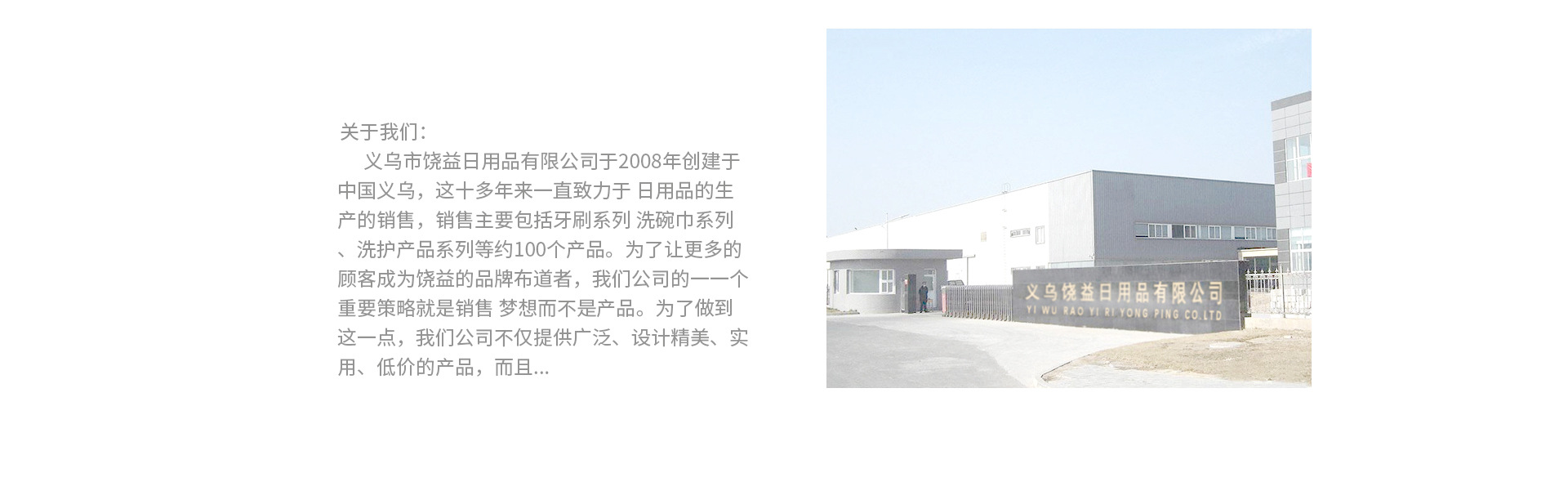 饒益(浙江)日用品有限公司是一家致力于生產與研發各類牙刷、個人護理、美妝設計、OEM貼牌的多元化公司,本公司占地面積5000㎡,建筑面積2000㎡,在職員工100余人,配備了20余臺先進的生產設備和測量儀器,年產量達2000萬余件。 始終如一的把產品品質、設計、客戶體驗作為企業發展的生命線,饒益人的企業使命出自南宋謝靈運《廬山輝源法師誄》:“廣演慈悲,饒益眾生”。真正做到饒益客戶,饒益代理,饒益員工!“RAOYI”品牌的產品戰略執著于高追求!我們獨樹一幟的外觀設計、時尚的色彩搭配,專業的生產制作,秉承“始于顏值,忠于品質”的產品理念,培養了大批精誠合作的代理和客戶群體。從微小的細節到產品包裝,饒益嚴格的對待每個產品