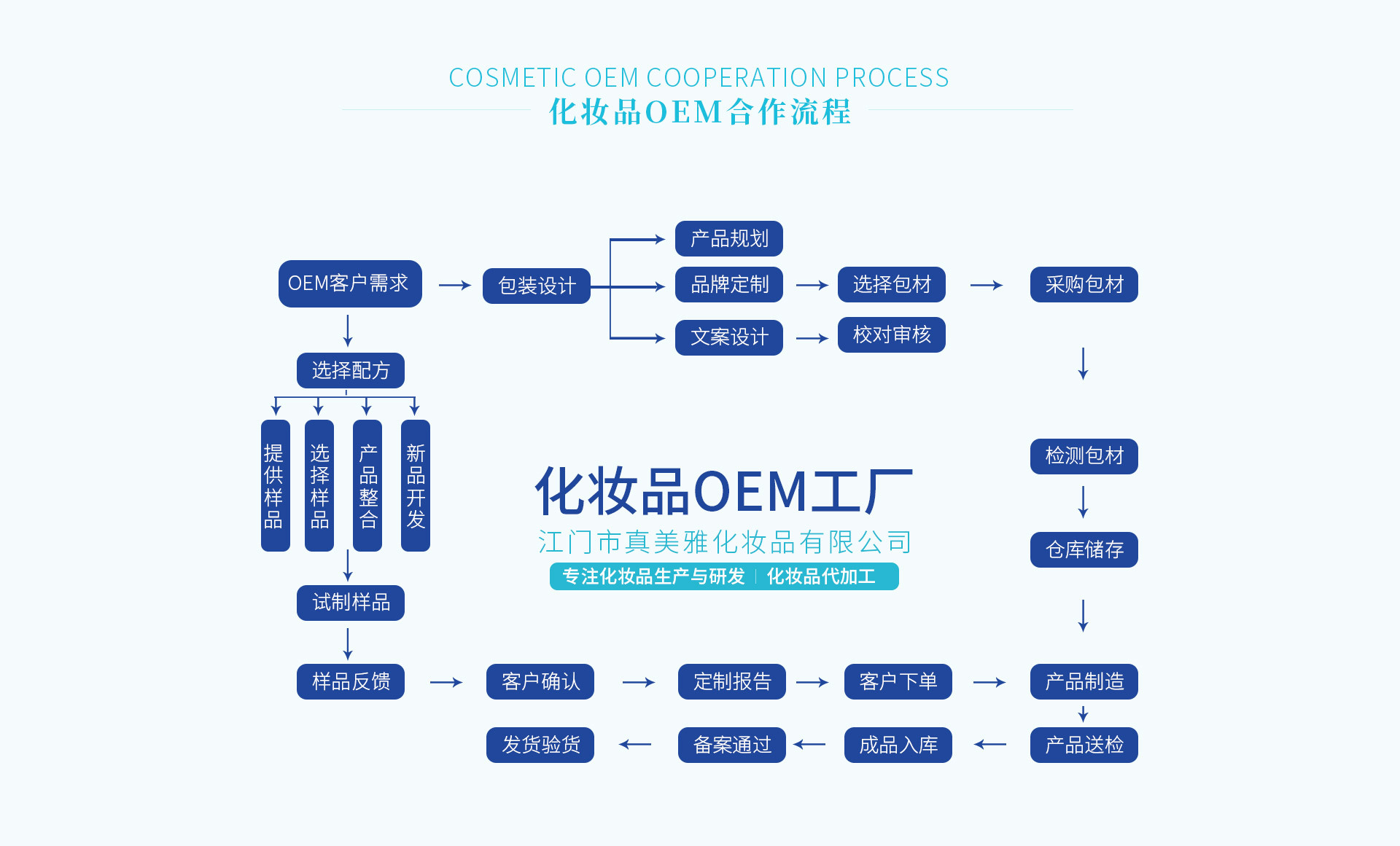 真美雅化妝品有限公司是一家專注從事高新技術化妝品研發、生產、銷售、服務及功效性原料一體的OEM、ODM(代加工)綜合性企業。我公司堅持以誠信經營為原則,著力于打造以客戶為本,以質量為命脈,讓客戶滿意的生產企業。并以雄厚的技術力量作后盾,不斷研發各種品質優良的化妝品半成品,根據市場的各種需求進行靈活性的配方設計,幫您生產個性化產品,助您創造自己的品牌,為您靈活運作市場提供有力的保障。 這里就是您的工廠,這里有您的技術研發基地,生產基地,策劃團隊,您需要什么產品,一個電話就可以解決。不論您是批量生產,還是小批量加工,都能再獲得高質量產品的同時,享受到同樣優良、真誠的服務。 本工廠擁有自動填充機、全自動打包機、噴碼機、自動封口機、乳狀充填機、干燥機、手壓機、鎖蓋機、空氣壓縮機、往復式活塞填充機、半自動填充機、洗瓶機等等。歡迎各界朋友參觀、指導和業務洽談。