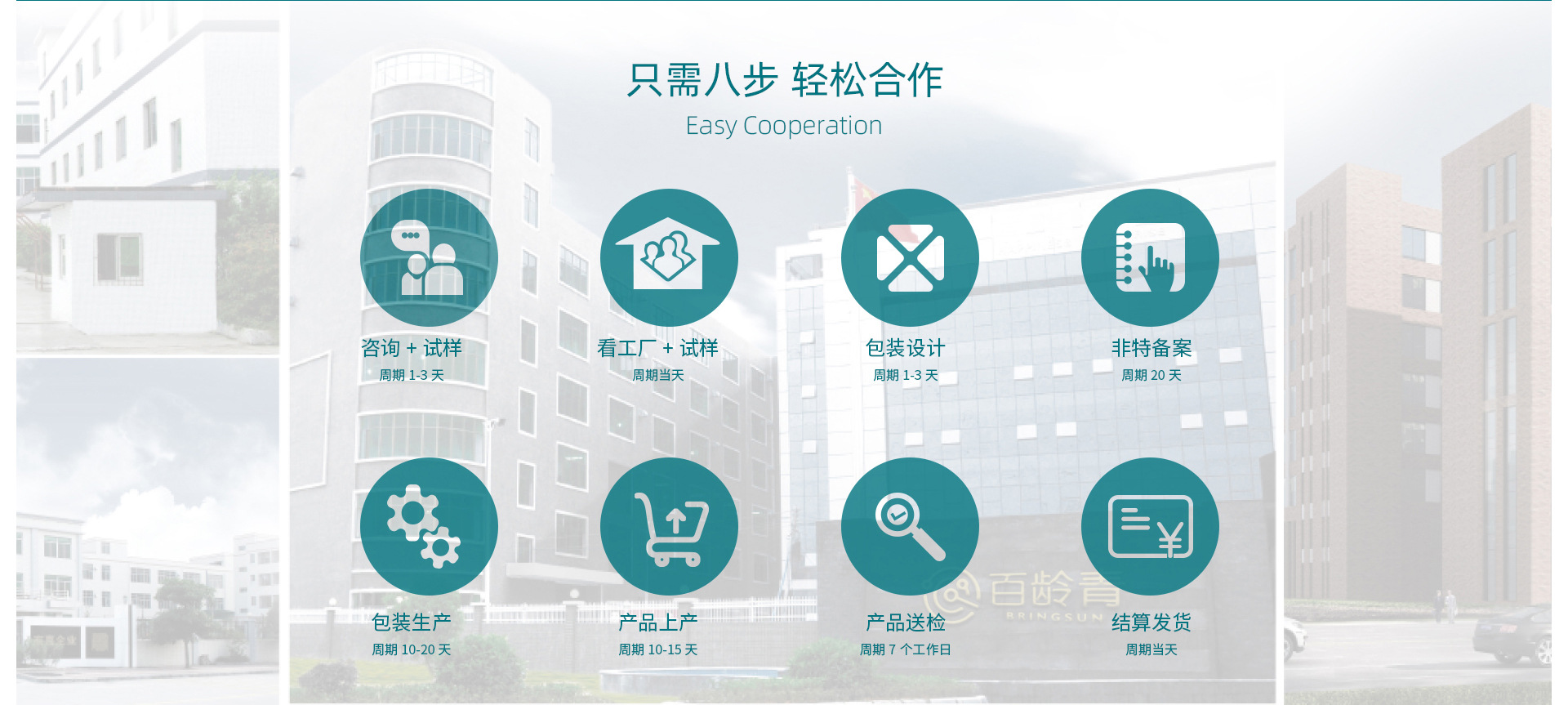 廣州市百齡青生物科技有限公司是面膜、護膚、彩妝、原料等產品專業生產加工的公司,擁有完整、科學的質量管理體系。廣州市百齡青生物科技有限公司的誠信、實力和產品質量獲得業界的認可。歡迎各界朋友蒞臨參觀、指導和業務洽談。