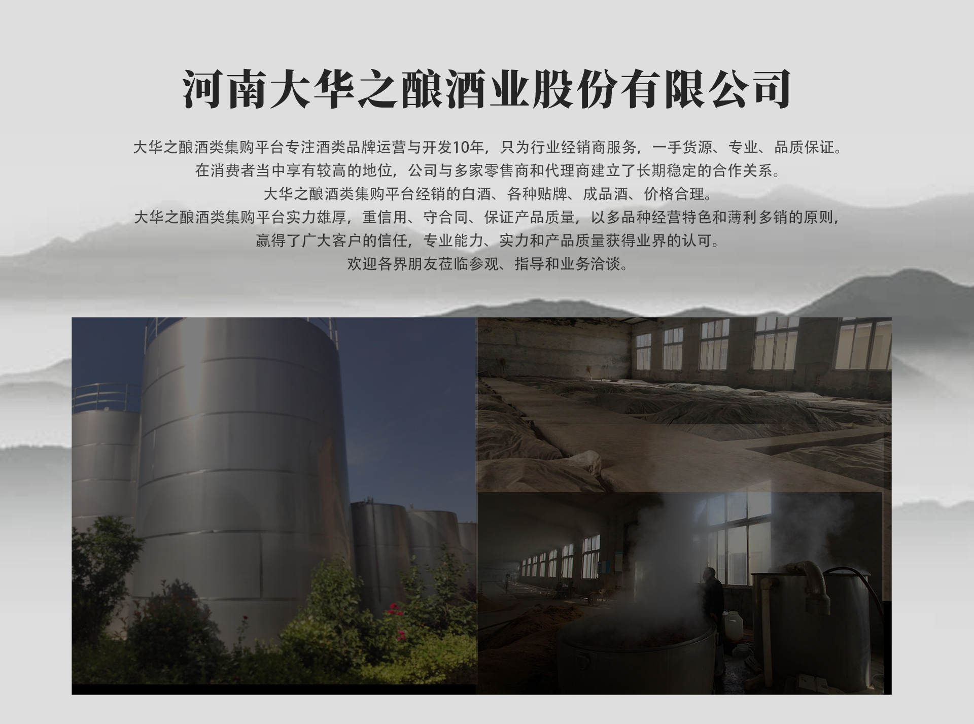河南大華之釀酒業股份有限公司成立于2013年3月8日,注冊資金500萬元,注冊地址河南省新鄭市龍湖鎮西泰山村。大華之釀酒業股份有限公司占盡地利之便,公司白酒廠正是地處中華五千年文明發源地--龍湖鎮西泰山。五千年前,中華始祖軒轅黃帝一統天下后,于西泰山大會諸侯,定國都,治國策,編厲法,創百業,華夏文明肇始?!饵S帝內經》載黃帝曾與岐伯論釀酒之法。如今大華之釀酒業股份有限公司正是秉承黃帝釀酒古法之傳統工藝,并結合現代科學技術,精心再造佳釀,以饗各方友人!