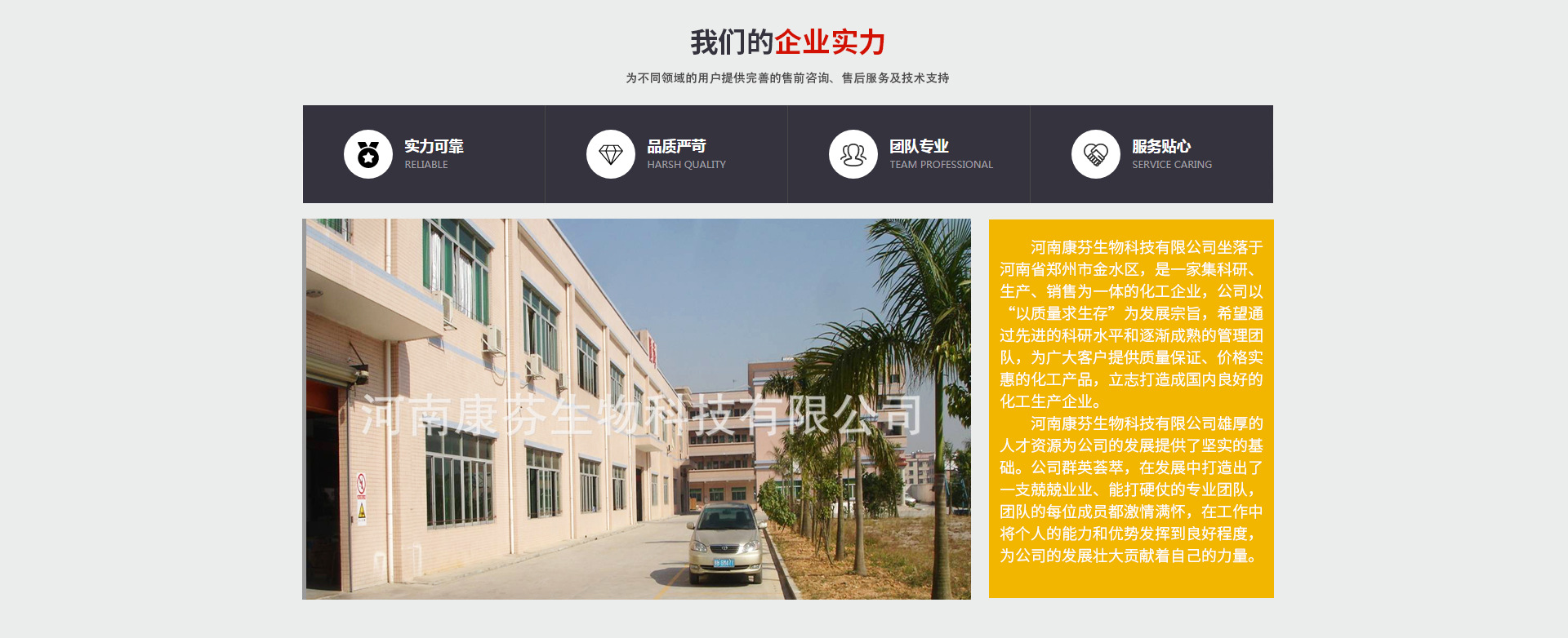 河南康芬生物科技有限公司坐落于河南省鄭州市金水區,是一家集科研、生產、銷售為一體的化工企業,公司以“以質量求生存”為發展宗旨,希望通過先進的科研水平和逐漸成熟的管理團隊,為廣大客戶提供質量保證、價格實惠的化工產品,立志打造成國內一流的化工生產企業。