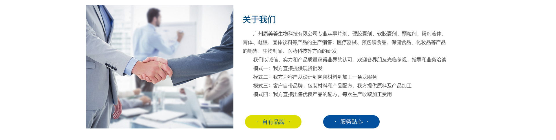 公司主要經營軟膠囊,硬膠囊,片劑,壓片糖果,果凍,口服液,固體飲料等一系列保健食品,還出口各種護膚品和化妝品,產品深受大家的青睞,我們以誠信為本,顧客至上,品質可靠,交貨及時的信念贏得大家的認可。