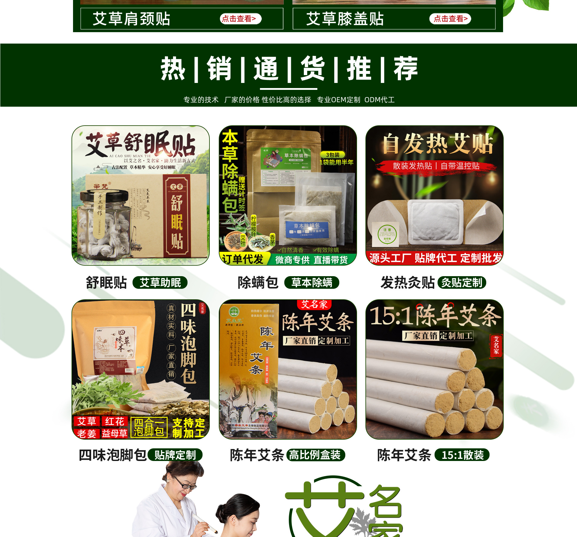 南陽(yáng)市宛城區(qū)艾名家艾制品廠是艾條、艾柱、艾絨、泡腳包、肚臍貼、膝蓋貼、頸椎貼、三伏貼、艾灸、南陽(yáng)艾制品、艾草香膏、艾皂、艾草精油、張嘉倪泡腳包、除螨包、艾臍貼、艾灸蒲團(tuán)、艾灸布套、眼貼、蒸汽眼罩等產(chǎn)品專業(yè)生產(chǎn)加工的公司,擁有完整、科學(xué)的質(zhì)量管理體系。南陽(yáng)市宛城區(qū)艾名家艾制品廠的誠(chéng)信、實(shí)力和產(chǎn)品質(zhì)量獲得業(yè)界的認(rèn)可。歡迎各界朋友蒞臨參觀、指導(dǎo)和業(yè)務(wù)洽談。