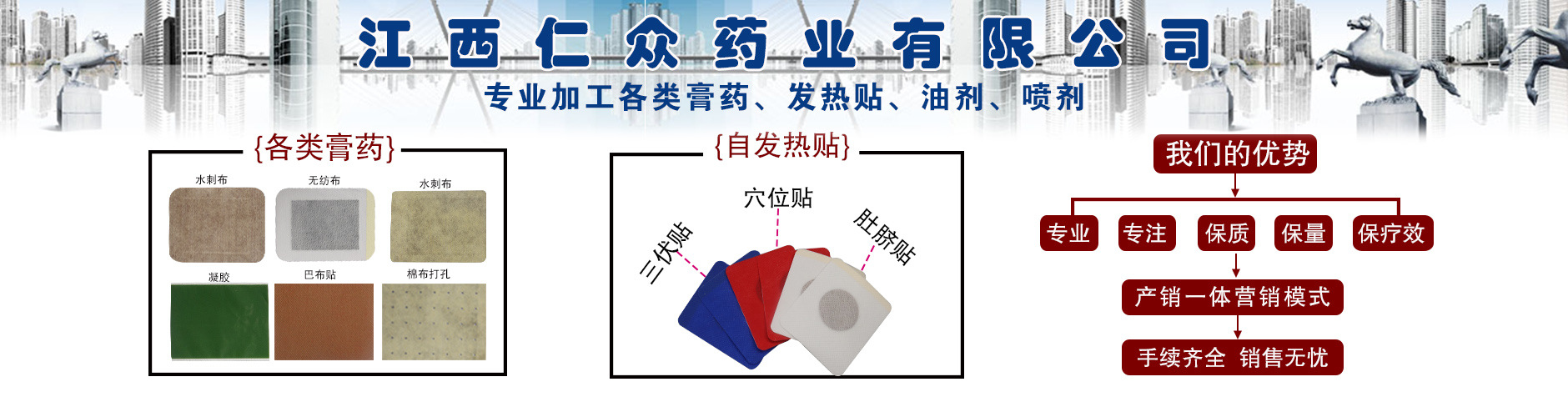 公司位于中國中部(江西)在這人杰地靈的地方生根發(fā)芽,公司專業(yè)貼牌各類外用膏貼、油劑、噴劑、軟膏等,企業(yè)從小做大發(fā)展到至今已初具規(guī)模,關(guān)聯(lián)工廠旗下有三個工廠占地面積近萬平方,有5個集團銷售公司分部各地,先后建成30萬級等GMP標(biāo)準(zhǔn)無塵車間,成功獲批械準(zhǔn)字號2個,一類器械文號多個,以及各類外用膏貼、油劑、噴劑、軟膏等生產(chǎn)許可證,12年的行業(yè)經(jīng)驗讓公司擁有完整、科學(xué)的質(zhì)量管理體系,公司擁有高科技自動涂布機,高精度切片機,自動包裝機、高精度罐裝機等先進設(shè)備讓產(chǎn)品效果有保障,讓消費者更放心。