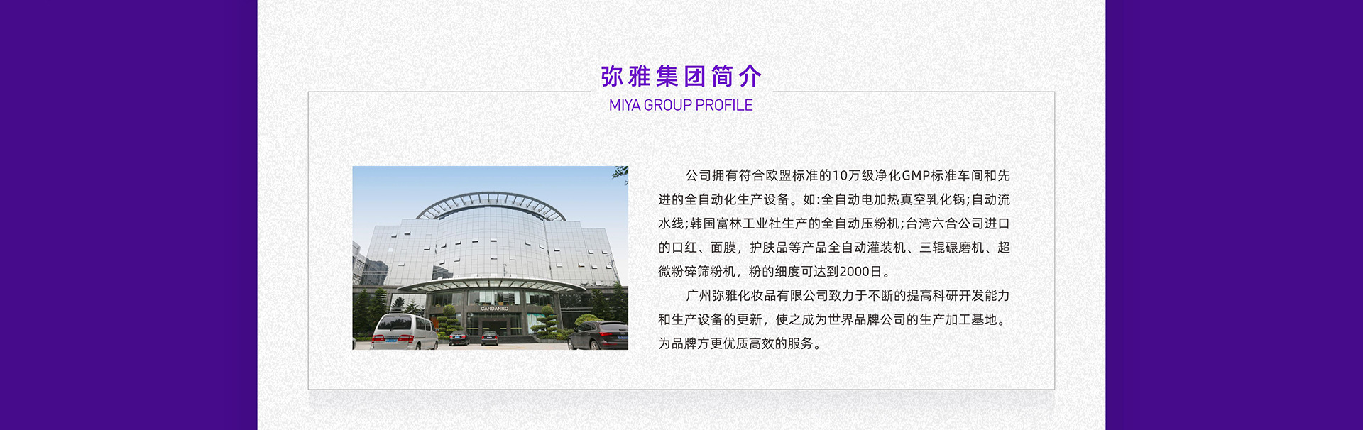 公司集產(chǎn)品研發(fā),生產(chǎn),銷售,服務(wù)于一體,為客戶提供 OEM/ODM/OBM一站式服務(wù),涵蓋產(chǎn)品規(guī)劃、配方開發(fā)、包裝設(shè)計、功效測試、乳化、灌裝、 包裝、倉儲物流等全方位服務(wù)。秉承“創(chuàng)新、共贏”的核心價值 觀,以“創(chuàng)造客戶市場價值,推動行業(yè) 持續(xù)發(fā)展”為己任,堅持“質(zhì)量第一、服務(wù)為先、 效率至上”的管理理念,提供“貼心、精心、 耐心”的服務(wù),不斷進行技術(shù)創(chuàng)新,研發(fā)安全有 效的高品質(zhì)產(chǎn)品,為客戶實現(xiàn)品牌價值和市場 價值。
