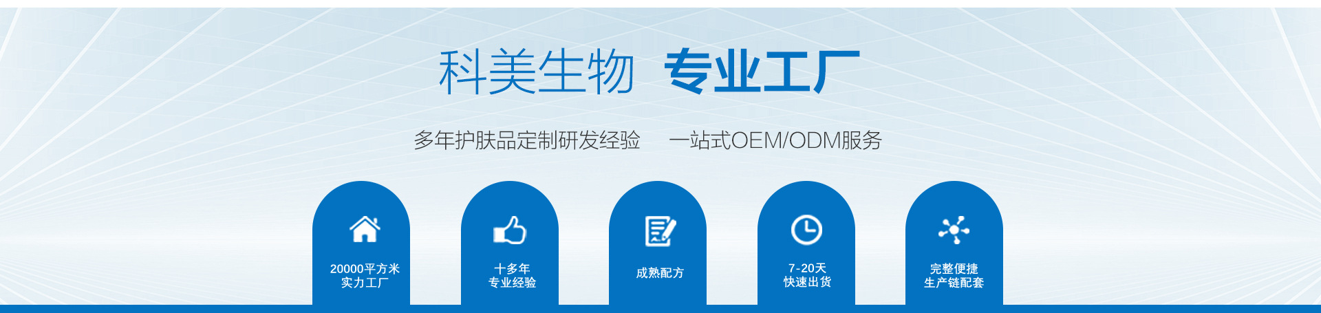 本公司主營化妝品OEM ODM OBM 一站式服務 優勢產品 潔面 精華水 乳液 面霜 凍干粉 凍干面膜,以產品品質為核心、以服務為基本要素,廣州科美生物科技有限公司;擁有26000多平方廠房,歡迎您的光臨。