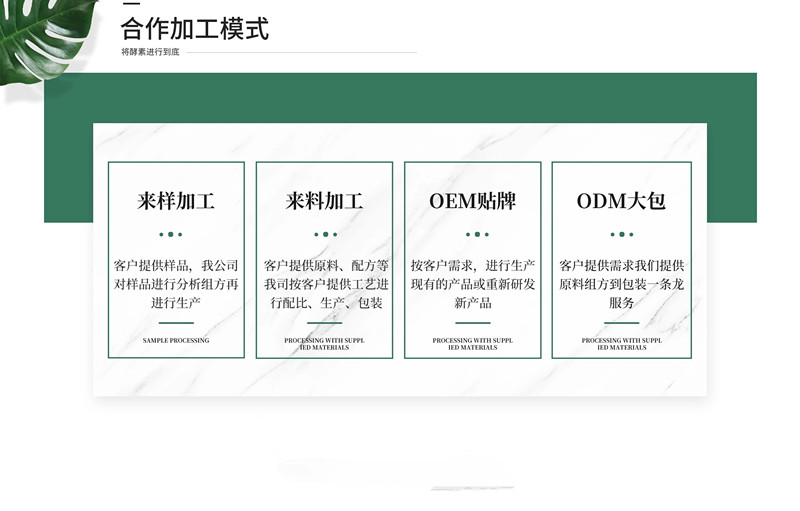 我集團公司專業承接定制:會銷、電商、微商、美容院、化妝品店、健康品連鎖、區域銷售、自有商標貼牌等...... 代工產品: 血橙/果蔬/綠咖啡/紅葡萄/葡萄子提取/紅石榴酵素粉,酵素果凍,酵素液,紅葡萄/膠原三肽酵素片,藍莓酵素飲,防彈咖啡,燕窩/綠咖啡/白蕓豆壓片糖果,白蕓豆/馬鈴薯代餐粉,CTP膠原三肽蛋白飲,爆搖奶茶,草本果凍/糖果/酵素液/酵素粉/果泥,針葉櫻桃酵素粉/壓片糖果/酵素果凍/酵素飲,男士片,五谷代餐奶昔,等等包括不限于上述所示。 公司業務: 品級:食品級 配方:工廠提供成熟配方或根據客戶要求定制 加工模式:OEM/ODM。