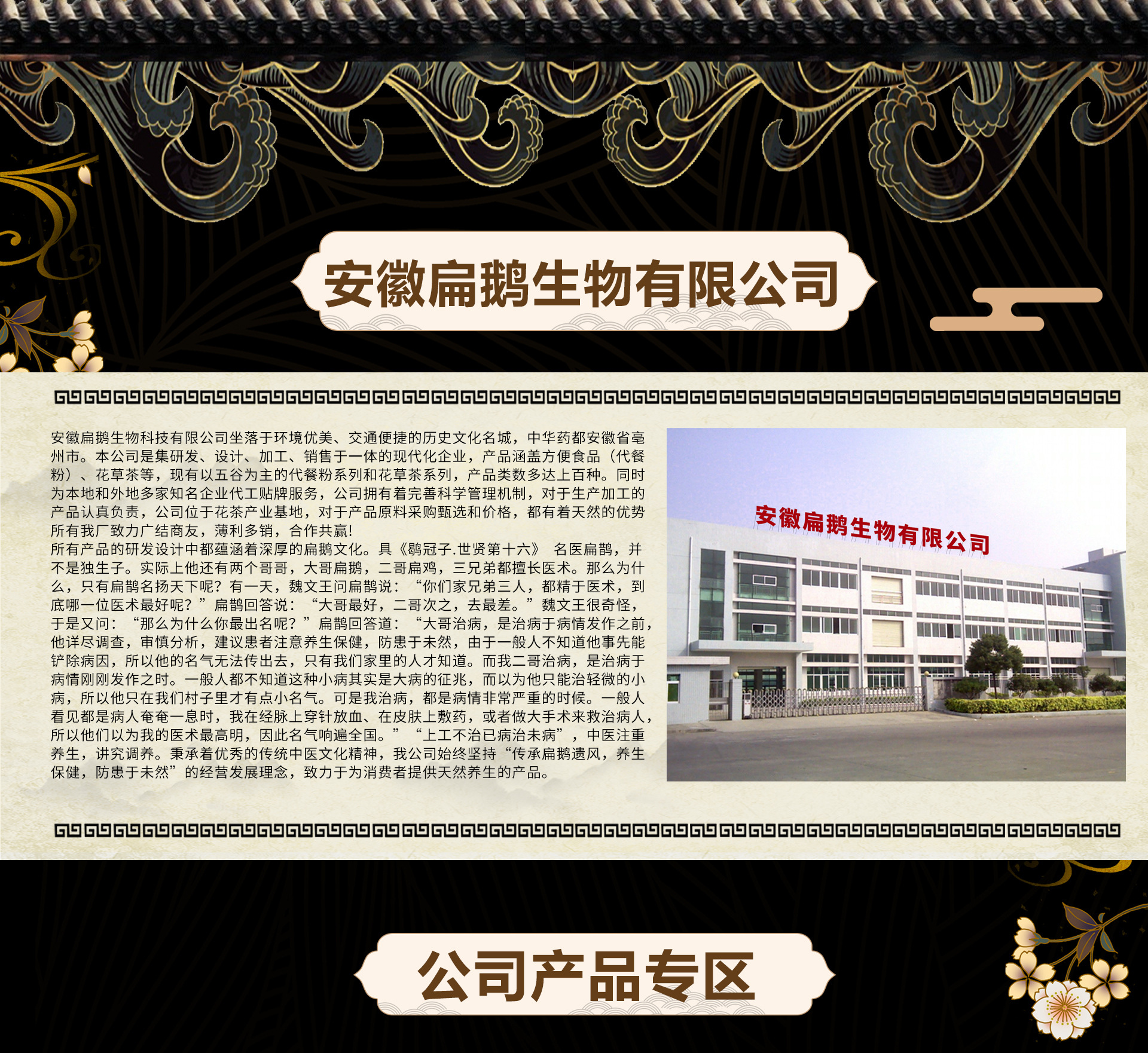 安徽段氏友誠食品有限公司是花茶、代餐粉、袋泡茶等產(chǎn)品專業(yè)生產(chǎn)加工的公司,擁有完整、科學的質(zhì)量管理體系。安徽段氏友誠食品有限公司為亳州市的標桿企業(yè),有機茶生產(chǎn)企業(yè),注冊資金500萬元,目前已發(fā)展成為以現(xiàn)代生態(tài)文明為核心,以倡導健康生活為理念,集生產(chǎn)、加工、銷售、科研等為一體的農(nóng)業(yè)產(chǎn)業(yè)化經(jīng)營企業(yè)。段氏友誠食品有限公司辦公面積2000平方,生產(chǎn)車間面積10000平方。