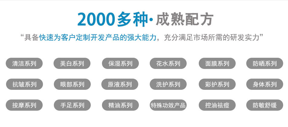 廣州漢妝化妝品廠是一家現代化、流程化、標準化、專業化的化妝品廠家。經過十幾年的經營,從代理并經營國、內外眾多高科技化妝品原料開始,同時一直進行配方研發、臨床、加工、銷售、并以法國多家的研發和生產經驗鑄就了一個中歐式化的、高標準的、現代化的化妝品生產基地、工廠交通便利,座落在廣州市白云區夏良路181號,廠內環境優美、舒適、干凈,總面積達10000多平方米,廠房按準GMP標準建造,引進德國先進的生產技術和實驗設備,配備多條自動化流水作業線,全自動3D封膜(環保膜)機,自動灌裝機,全套的先進真空無菌乳化鍋、攪拌儀等先進的制造設備和檢測儀器;標準的研發中心、微檢中心、質檢室、乳化間、樣品室、加工部、化驗部、原料間等流程空間;擁有自己穩定而精湛的技術研發團隊,管理規范,層層把關,流暢而又嚴謹,已成功通過ISO22716、GMPC質量管理體系認證,歡迎來廠參觀、考察、洽談!漢妝人將時刻恭候您的到來。