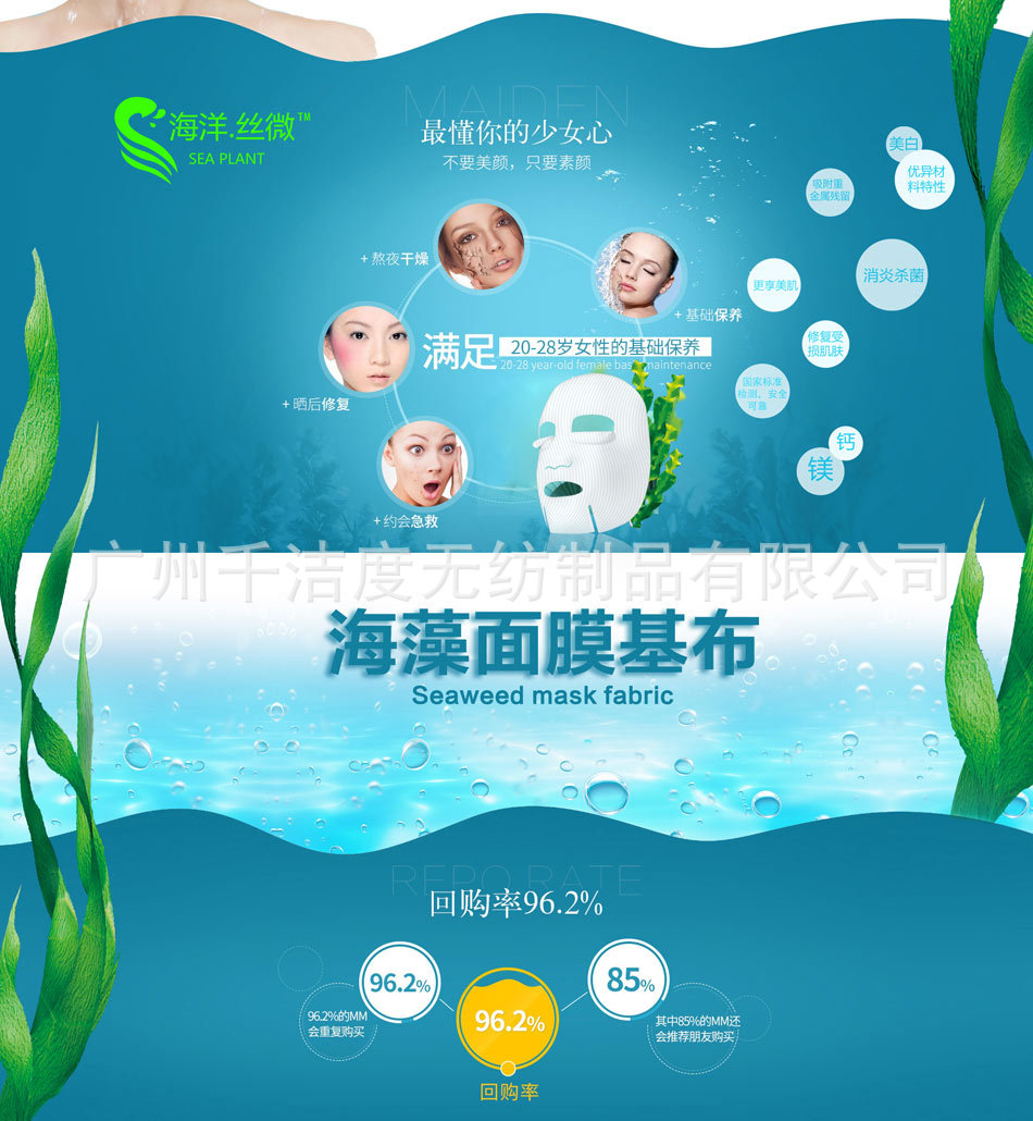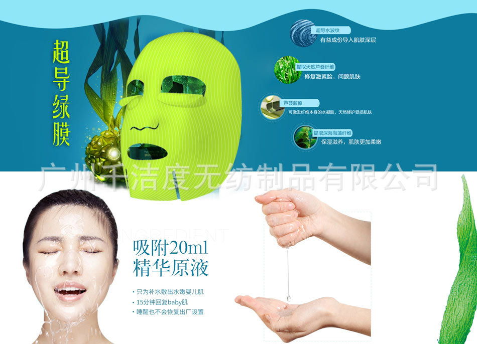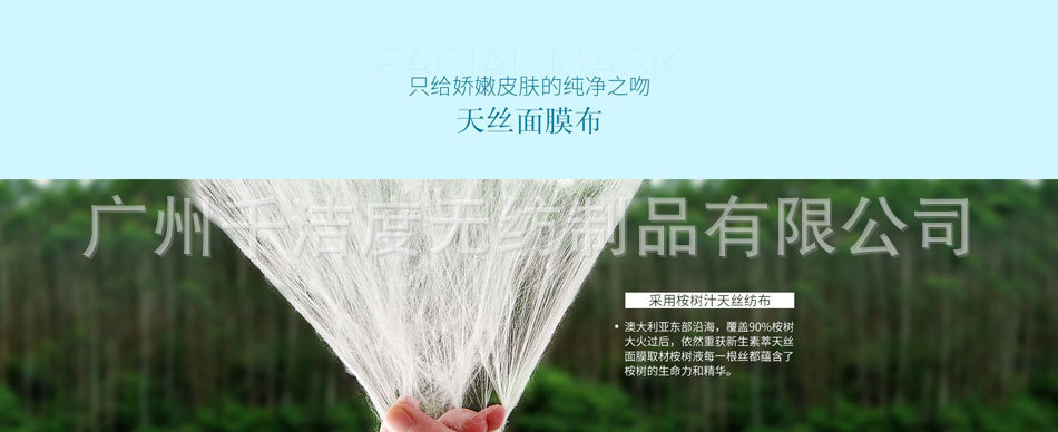 廣州千潔度無紡制品有限公司做為專業的面膜紙的供應商,一直以來,始終致力于面膜紙產品的生產和營銷,為眾多的化妝品廠和生活用品企業提供OEM貼牌加工服務,根據要求進行各種款式和特殊功效產品的研發,多年來,已為100余個品牌提供了服務. 本公司生產的面膜紙是運用目前是采用純天然植物纖維研制而成;絕無添加任何化學物質,產品主要功能是加工面膜,且形態各具,吸附性、鎖水性等達到80%,手感細膩柔軟,表面光潔,包裝纖巧時尚;主要用于面部護膚和化妝等日常生活方面,還可用于擦拭各種相機鏡頭和精密儀器鏡面及眼鏡鏡面等。 展望未來,千潔度無紡制品將繼續以專業的品質和服務為依托,不斷進行技術革新和產品研發,與潮流趨勢同步,以更高的品質滿足客戶多層次的需求。 千潔度,期待與您,真誠合作。