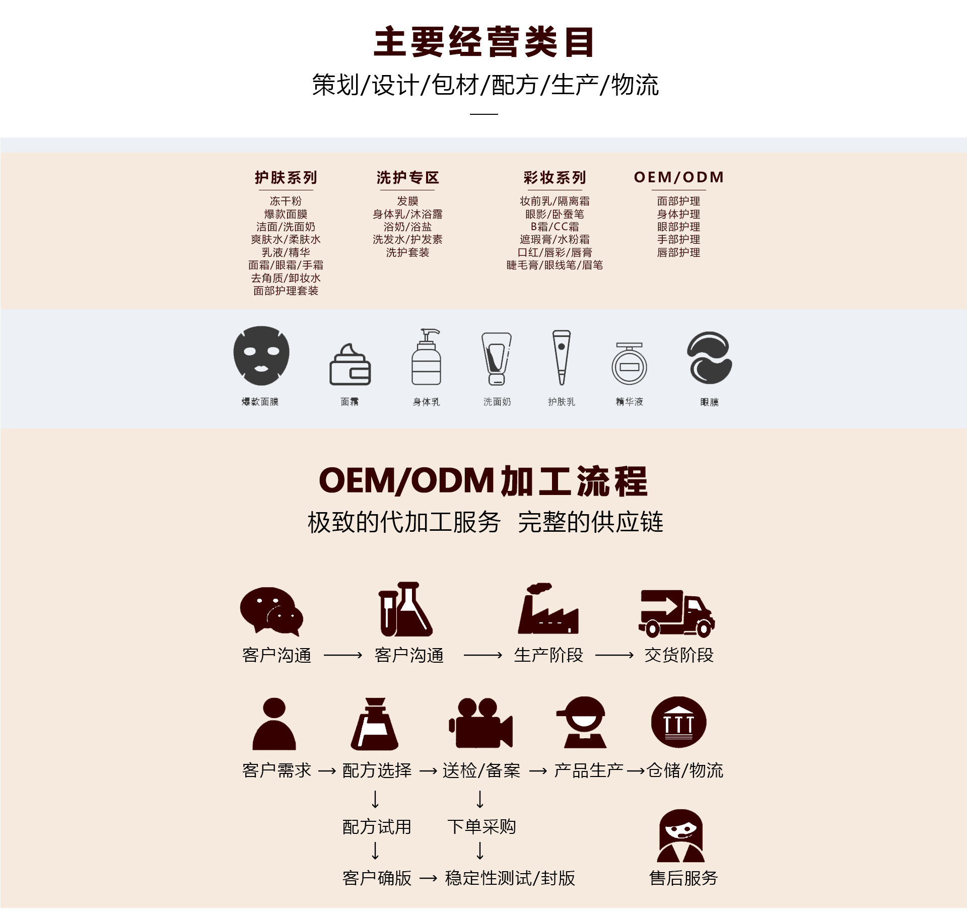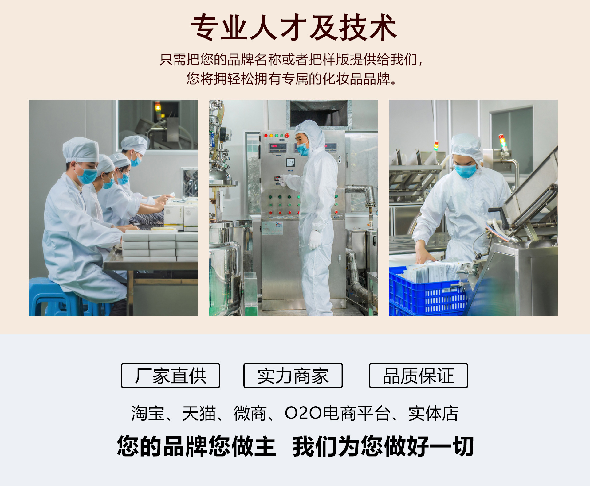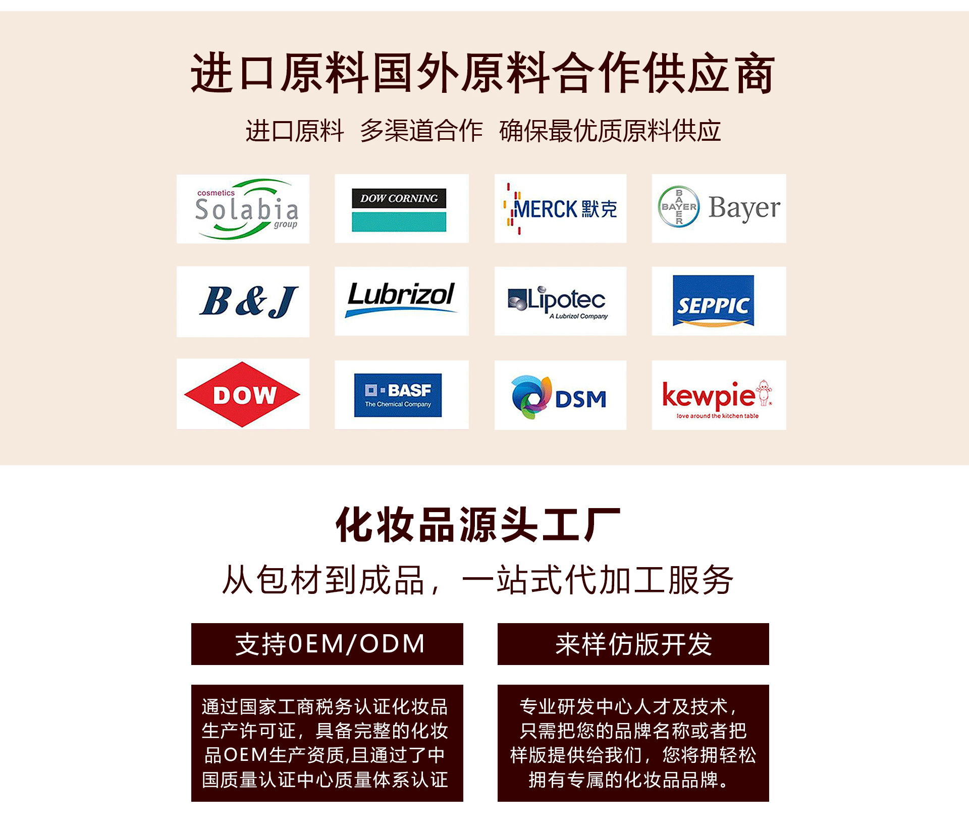 廣州市美意化妝品有限公司成立于2014年,公司坐落于風景秀麗的白云山腳下,占地面積一萬多平方米,環境幽雅,內設辦公樓,宿舍樓,生產廠房,物流倉庫,設施齊全。公司是集產品研究.開發.生產為一體的現代化生產基地,是以OEM/ODM為主的化妝品加工工廠。經過多年的深耕發展現已成為國內外知名的化妝品OEM,化妝品ODM品牌。廠房車間全部按照國家頒布的相關衛生管理條例建設,國際一流無菌的包裝生產線、多臺先進的全自動化灌裝機設備、多套真空乳化設備和先進的C2O超臨界萃取技術。嚴格貫徹GMP生產標準,采用先進的生產技術和設備,所有原料均來自于瑞士、德國和日本等多個國家。并且與國內外多家知名原料廠商,包材供應商簽有協議,將各家優勢集于一體,通過跟我們聯系便可解決您的一切需求。