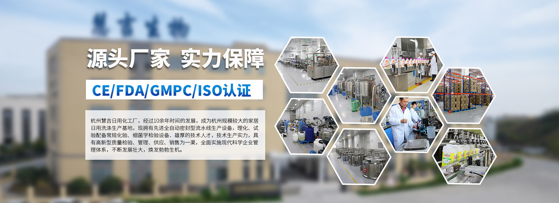 杭州慧吉生物科技有限公司創辦于2000年6月,是一家專業生產家庭衛生、日用洗澤、醫用消毒、化妝品等 系列產品的研發、加工、銷售及配送綜合一體的民營企業。公司坐落于杭州市余杭區仁和先進制造業基地,占 地面積約3萬多平方米。擁有全自動高端設備生產線,檢驗設備齊全,配備有規范的理化檢驗和微生物檢驗室, 不僅為公司業務提供堅實基礎,也大大提升行業綜合競爭實力。 公司從創立至今已發展成為杭州地區規模較大的家居日用品生產基地,不僅有雄厚的資金實力、強大的生 產能力,還擁有一支高素質,充滿生機活力的專業化團隊,核心技術人員多名,90%擁有本科以上學歷。 慧吉生物科技有限公司是一家成長型企業,公司堅持以“質量在手中,顧客在心中”的管理方針與服務理念, 熱忱歡迎社會各界朋友和企業加盟與投資合作!